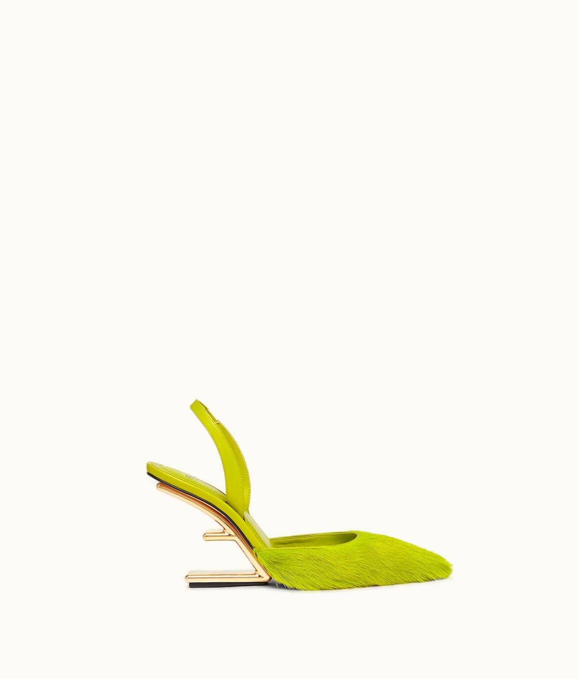 Fendi First - Acid Green Pony Hair High-Heeled Slingbacks | GLINT