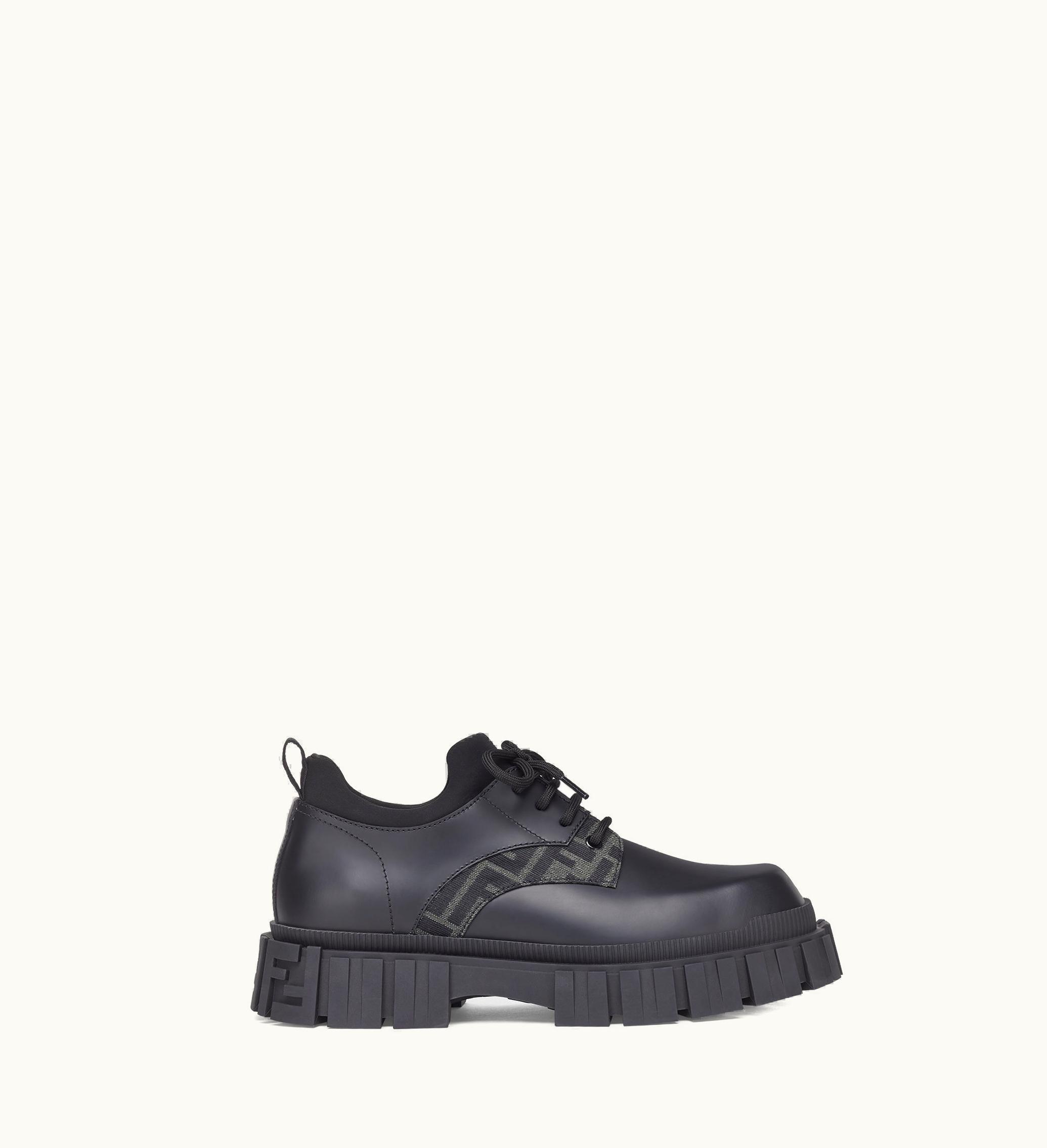 Fendi Force Lace-Ups Black Leather and FF Jacquard Sneakers | GLINT