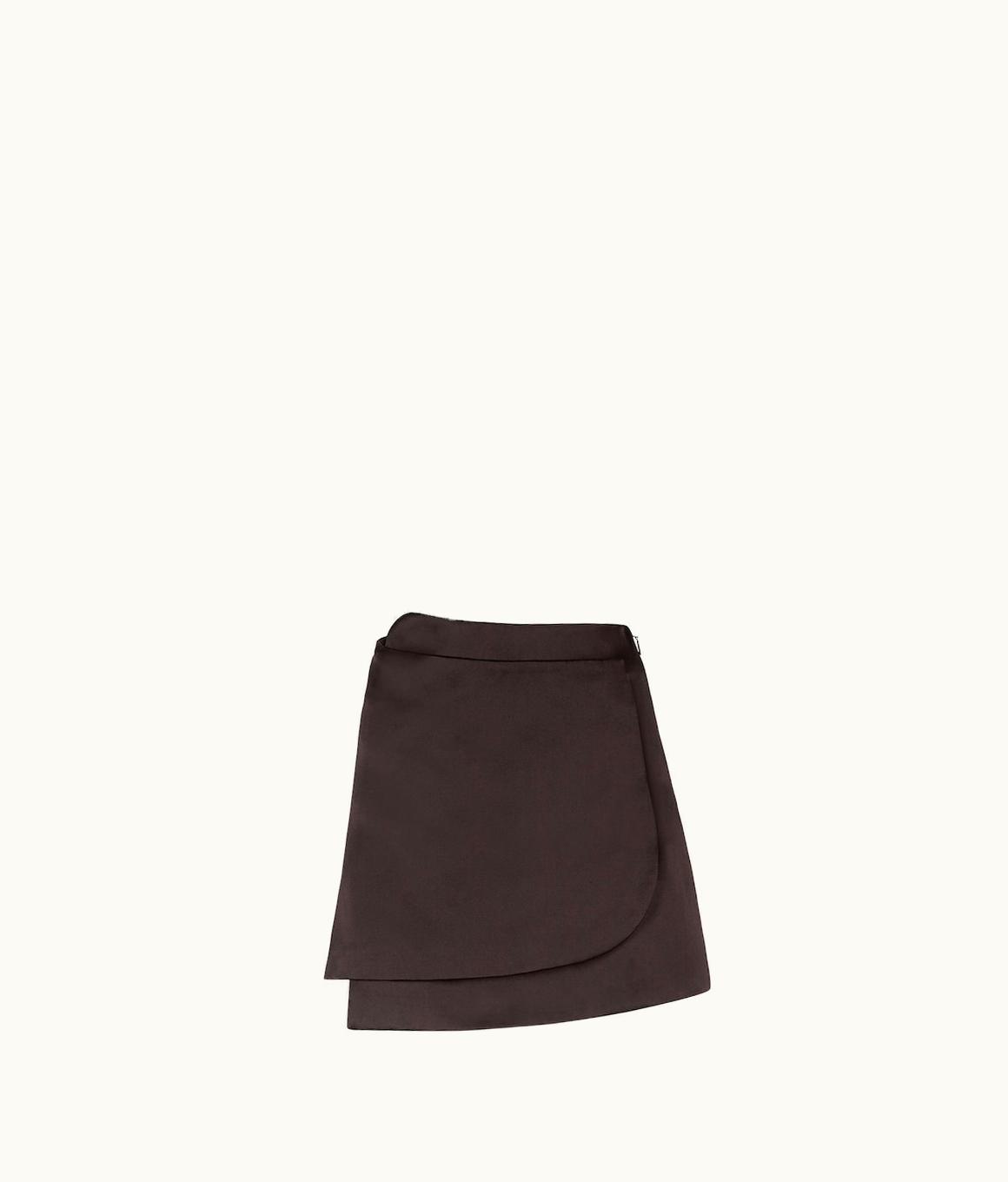 Fendi High-Waist Duchess Satin Wrap Skirt - Brown | GLINT