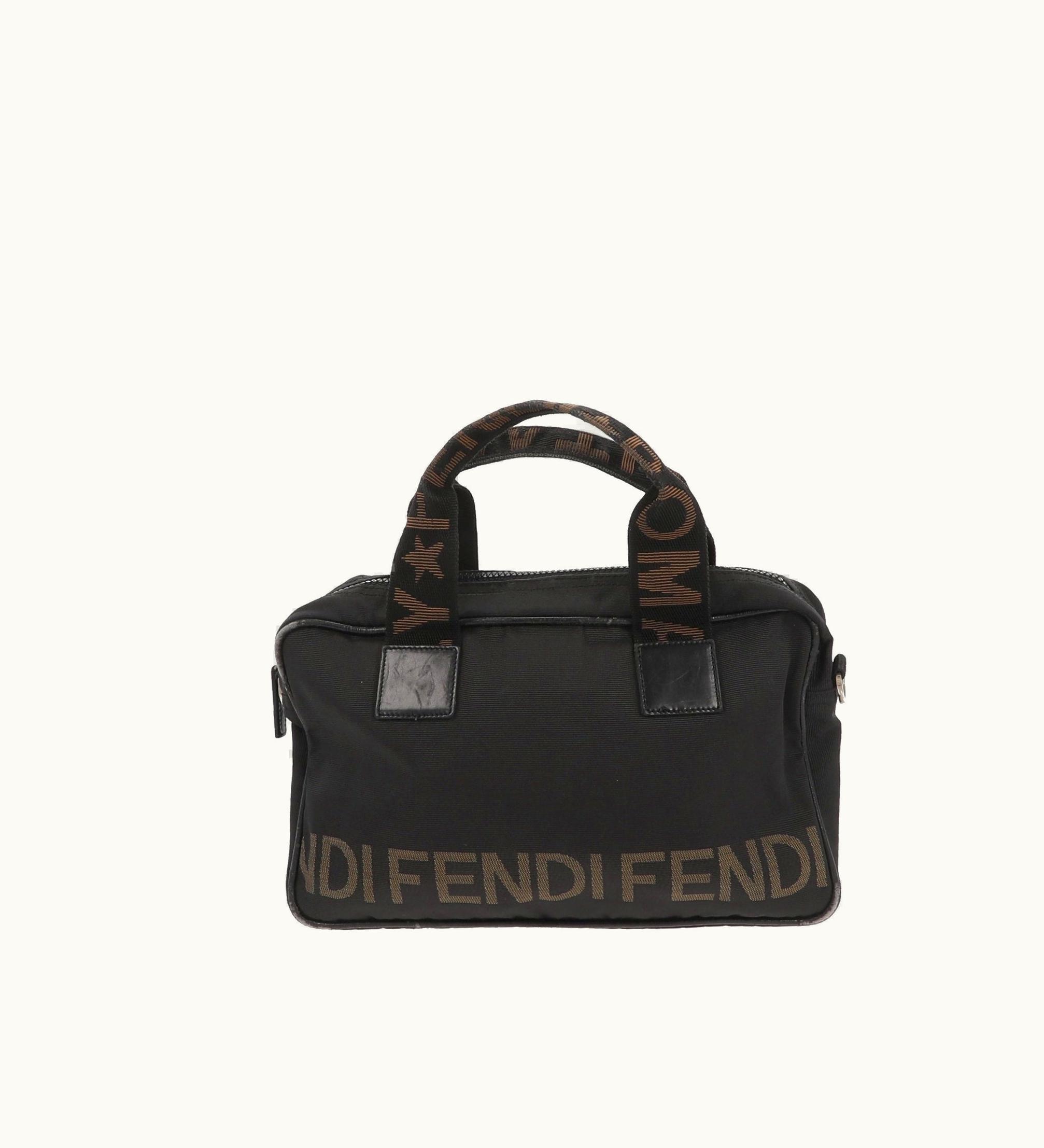 Fendi Interchangeable Shoulder Strap Handbag Black Fabric Beige Accents | GLINT
