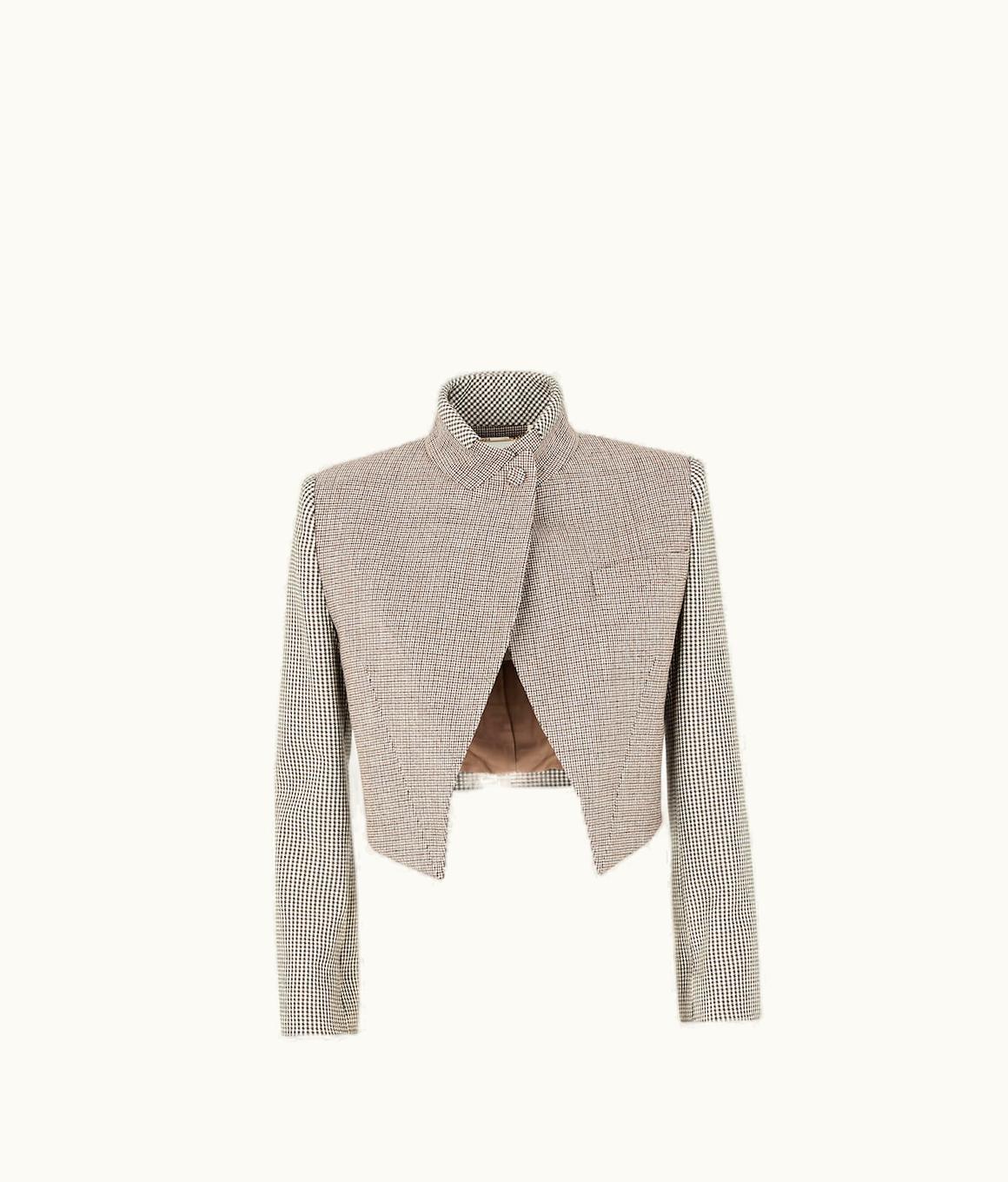Fendi Jacket - Beige Houndstooth Wool Jacket UZ0122817 | GLINT