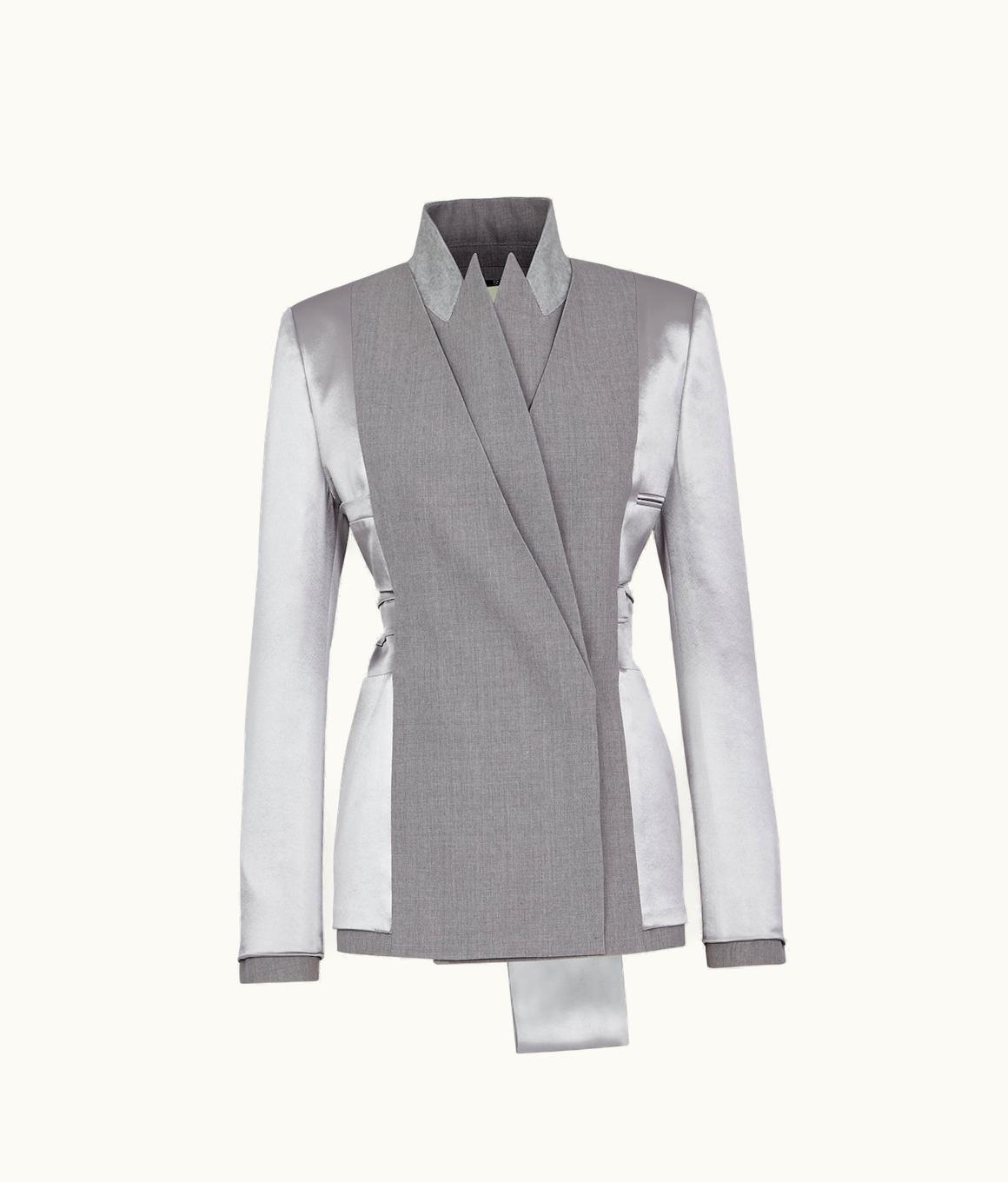 Fendi Jacket - Grey Satin And Wool Gabardine Overcoat UZ0122135 | GLINT