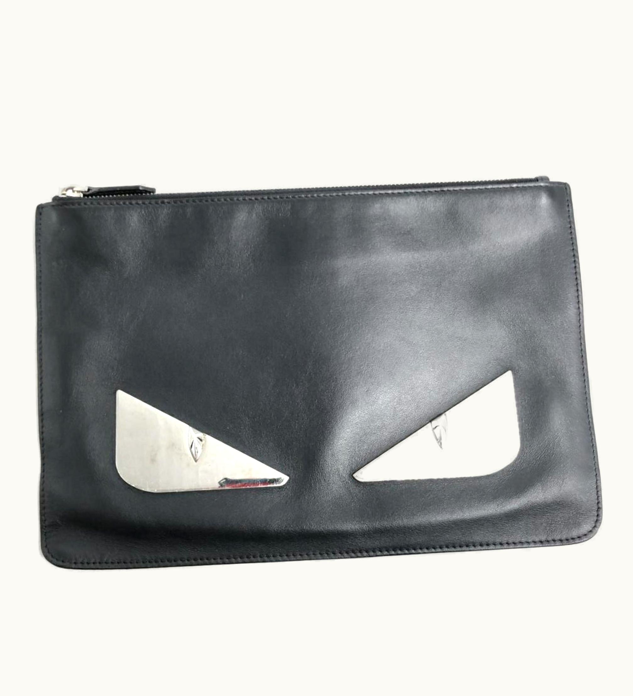 Fendi Leather Monster Clutch Bag 7N0078-Sqp Black | GLINT