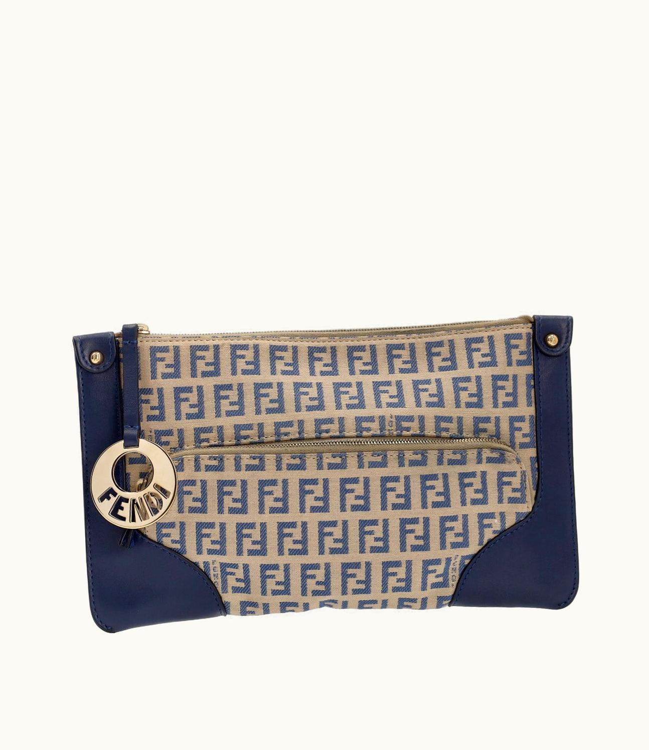 Fendi Leather/Zucchino Clutch Beige/Blue | GLINT