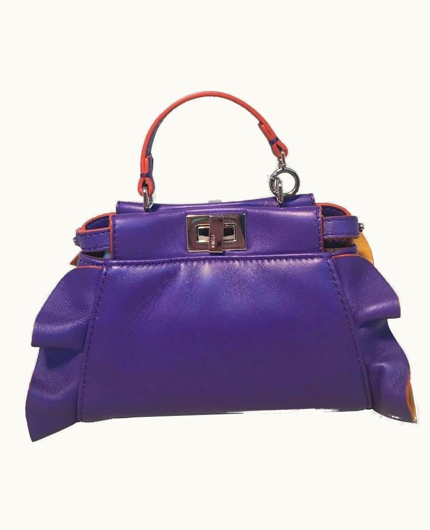 Fendi Micro Peekaboo Bag Purple Yellow Ruffle Leather Silver Hardware | GLINT
