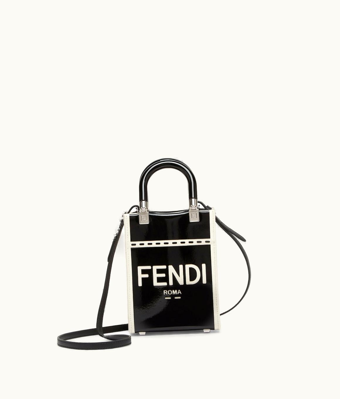 Fendi Mini Sunshine Shopper - Black Patent Leather And Canvas Mini-Bag | GLINT