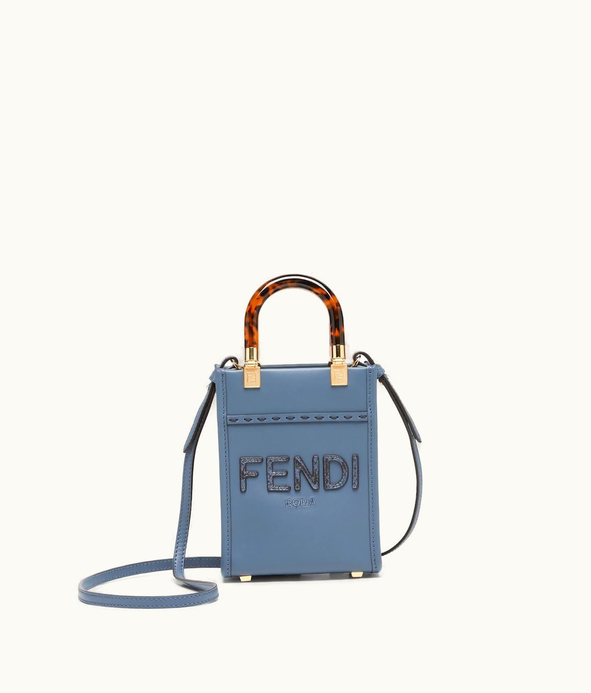 Fendi Mini Sunshine Shopper - Blue Leather And Elaphe Mini-Bag UZ0122089 | GLINT