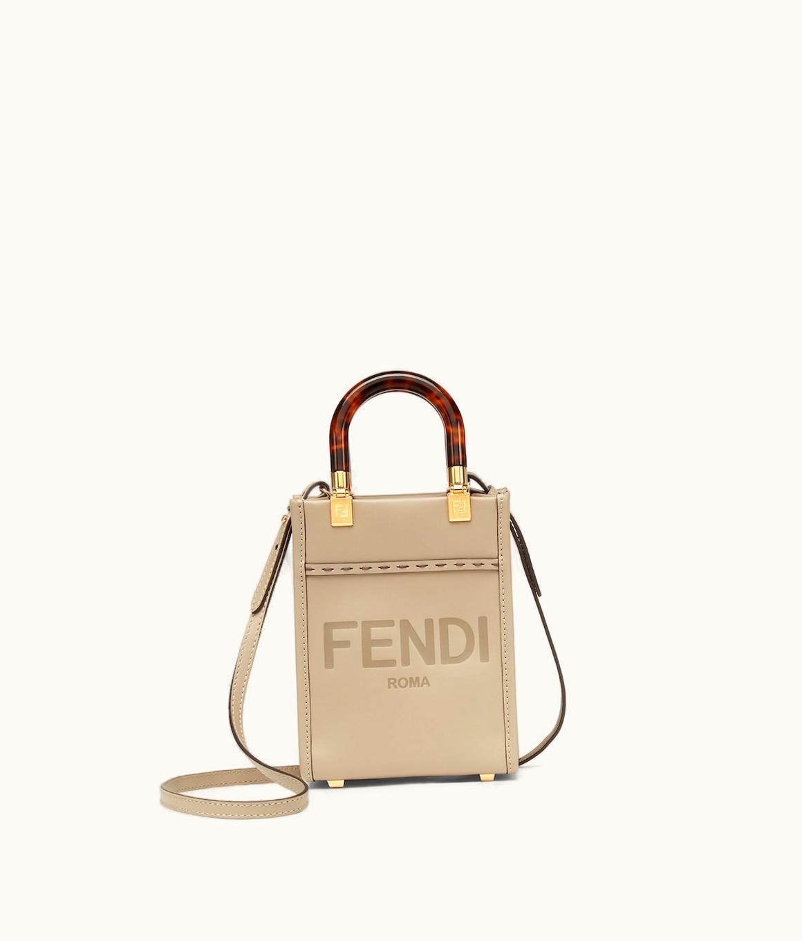 Fendi Mini Sunshine Shopper - Dove-Grey Leather Mini-Bag | GLINT