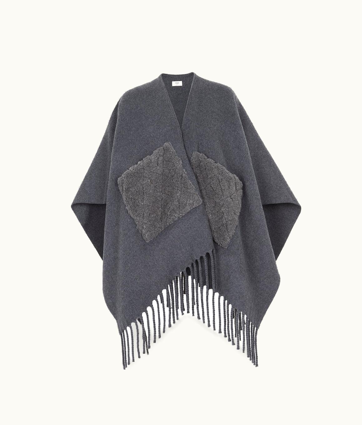 Fendi Mirror Gray Wool Poncho | GLINT