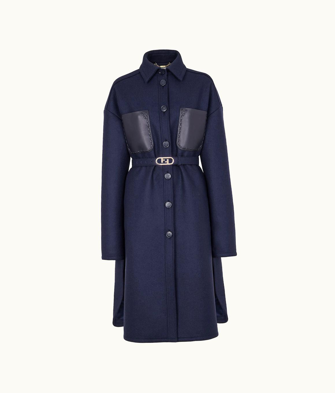 Fendi O'Lock Blue Wool Coat | GLINT