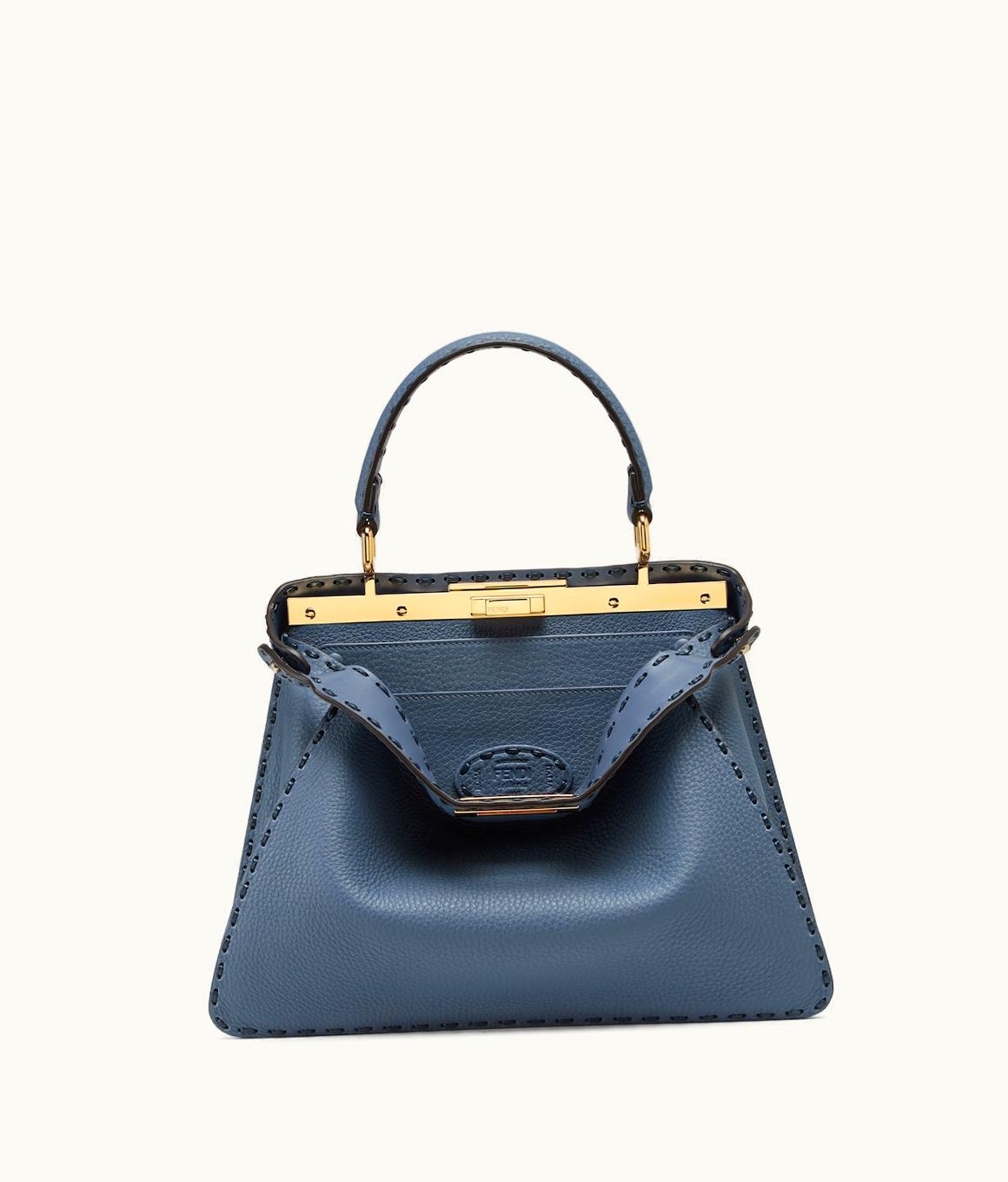 Fendi Peekaboo Iseeu Medium - Blue Selleria Bag With Oversize Topstitching | GLINT