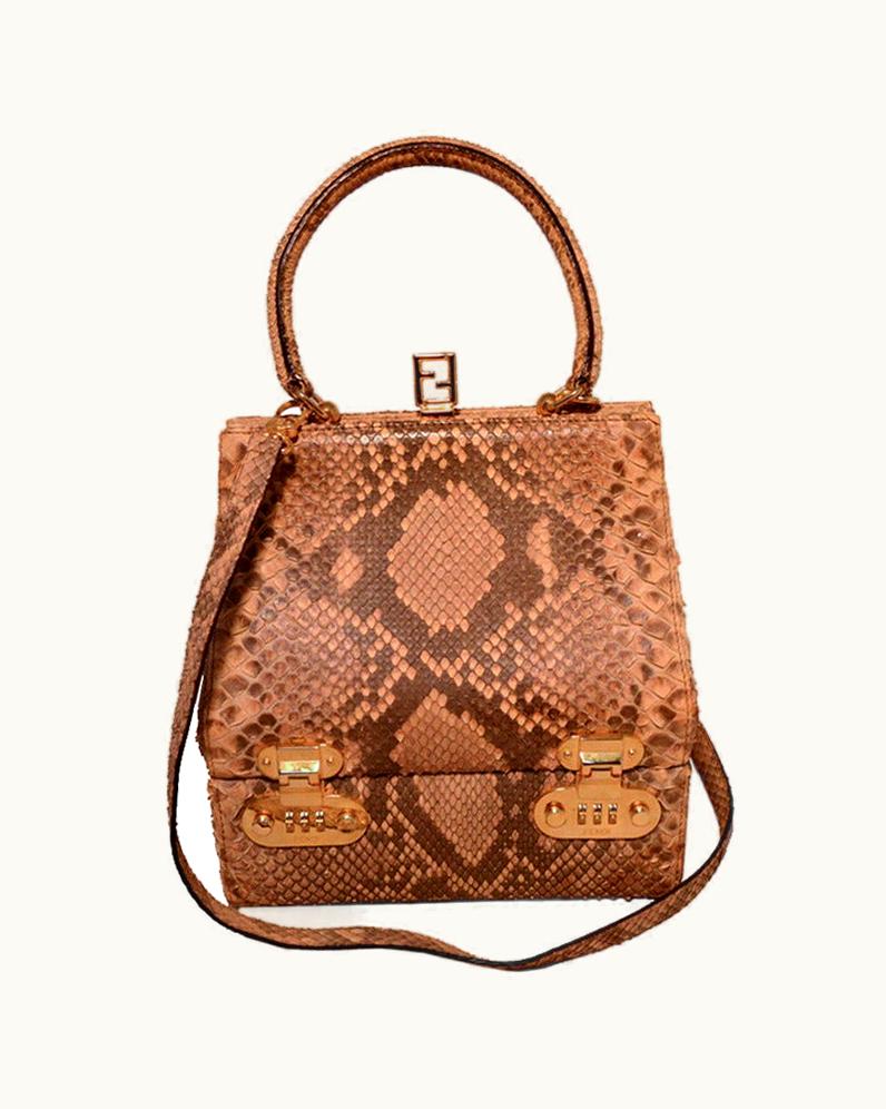 Fendi Python Snakeskin Double Compartment Top Handle Bag Natural | GLINT