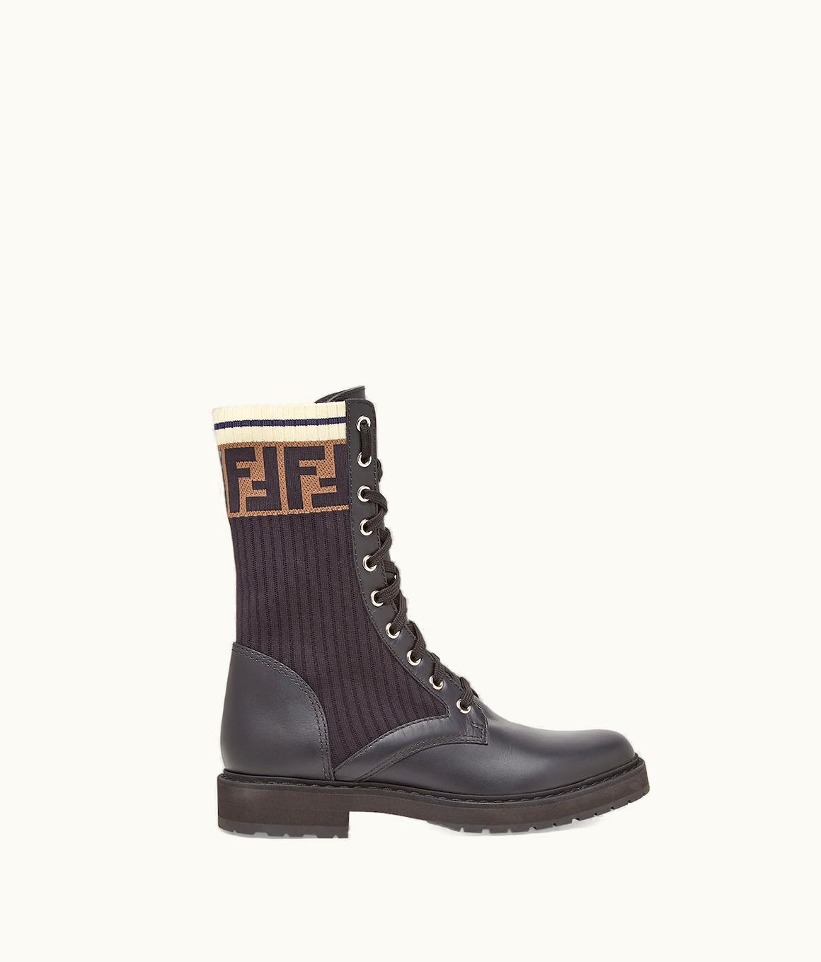 Fendi Rockoko - Black Leather Biker Boots With Stretch Fabric UZ0122924 | GLINT
