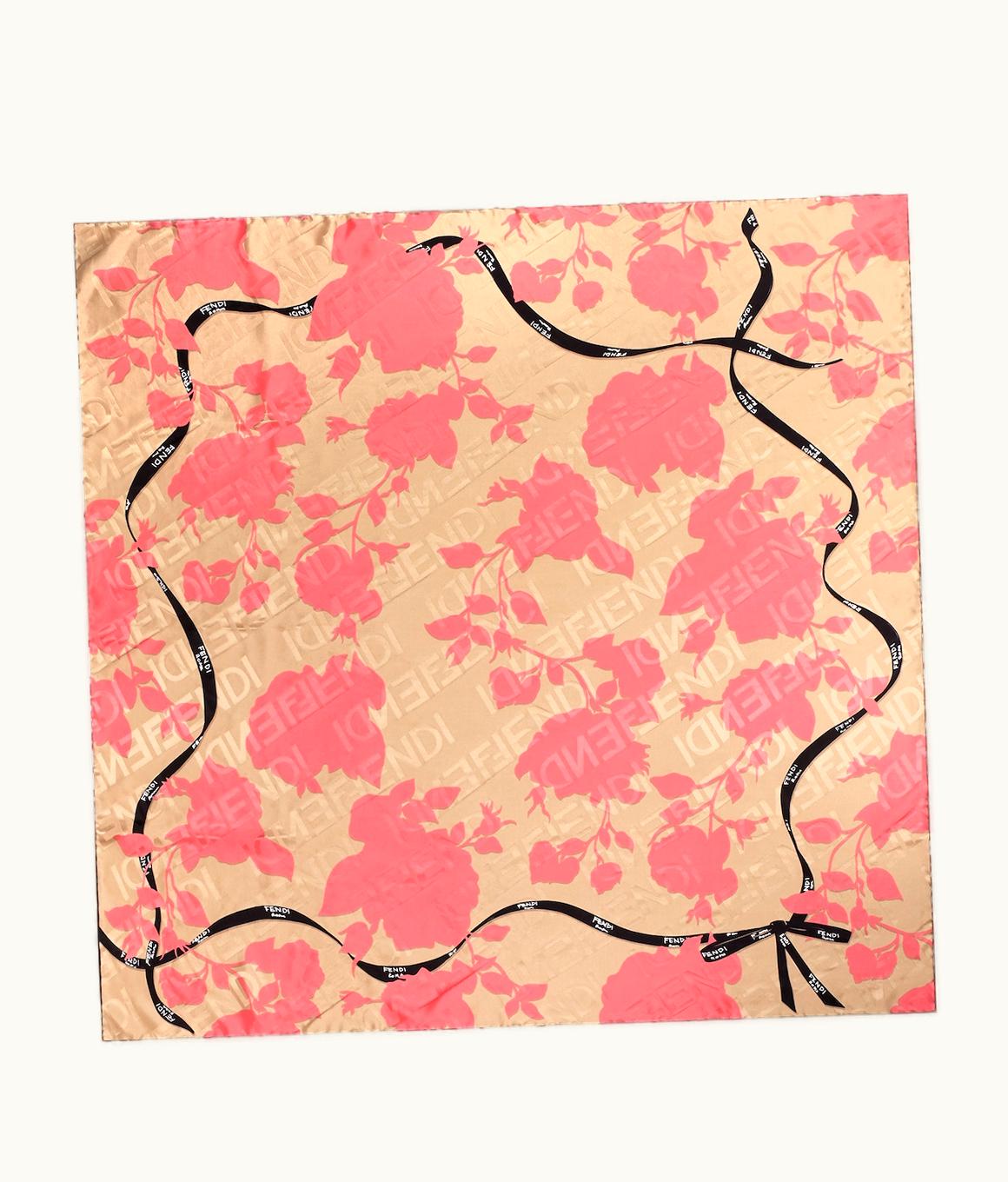 Fendi Roses Foulard - Pink Organic Silk Foulard UZ0122127 | GLINT