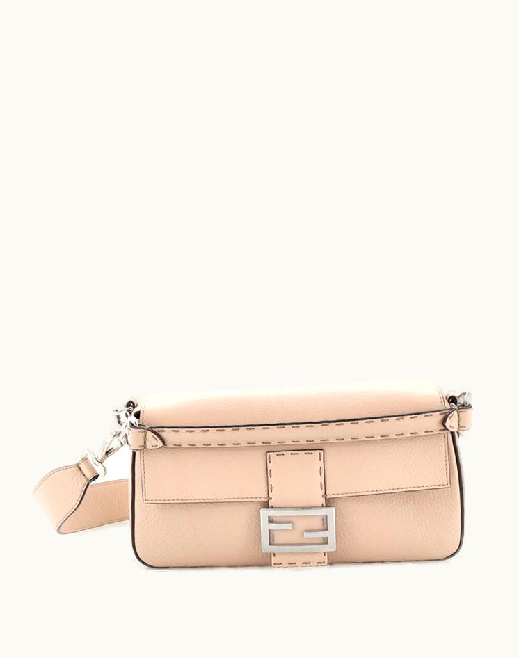 Fendi Selleria Baguette NM Medium Leather Bag Neutral Silver | GLINT
