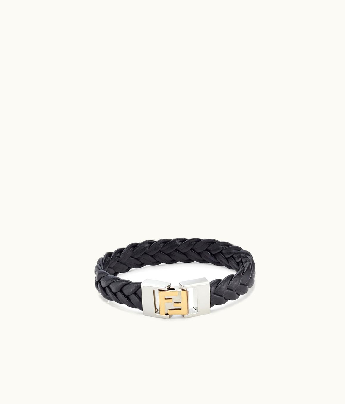 Fendi Stefano Pilati FF Black Leather Bracelet - Gold & Palladium | GLINT