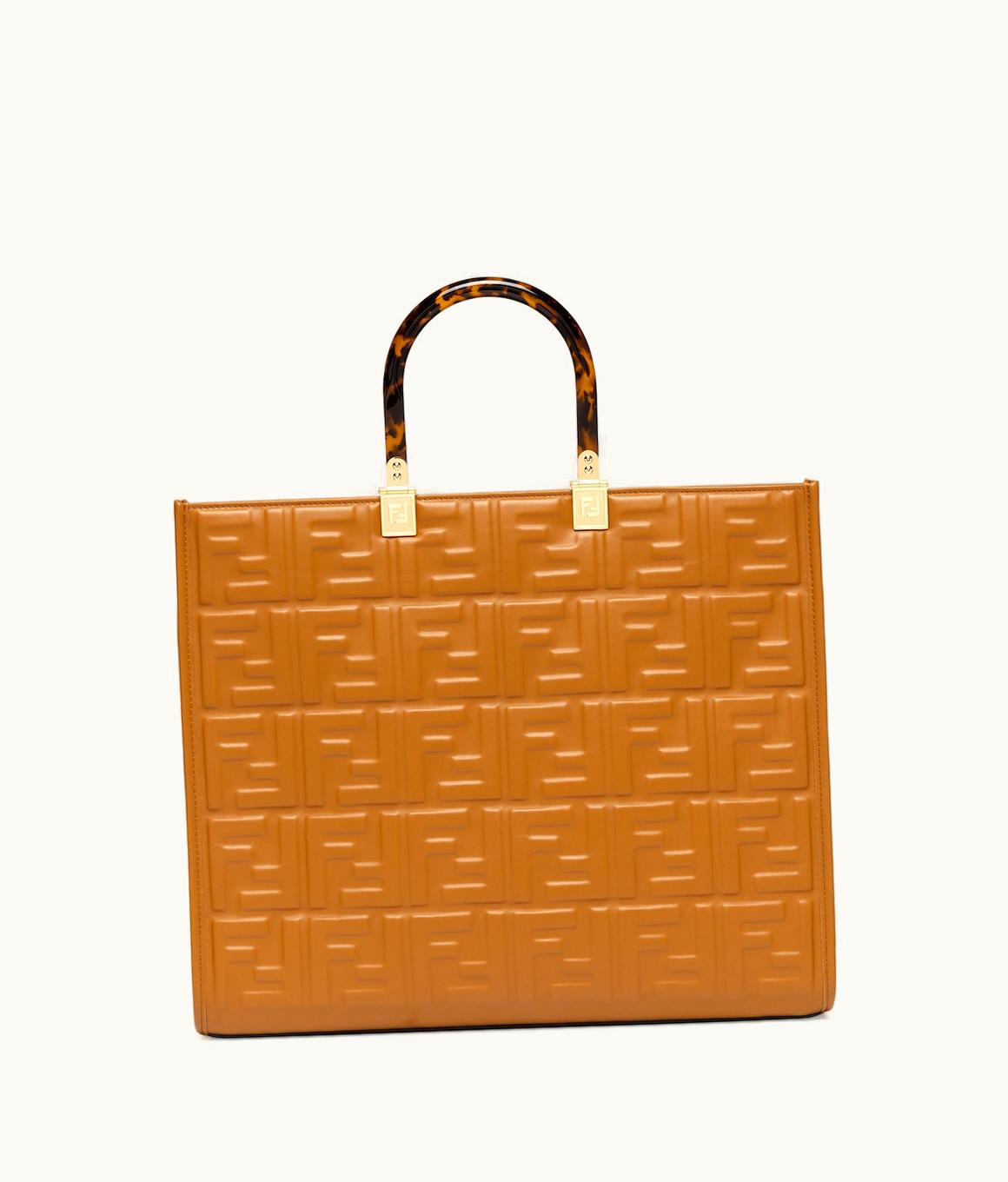 Fendi Sunshine Medium - Brown Leather Shopper With FF Motif | GLINT