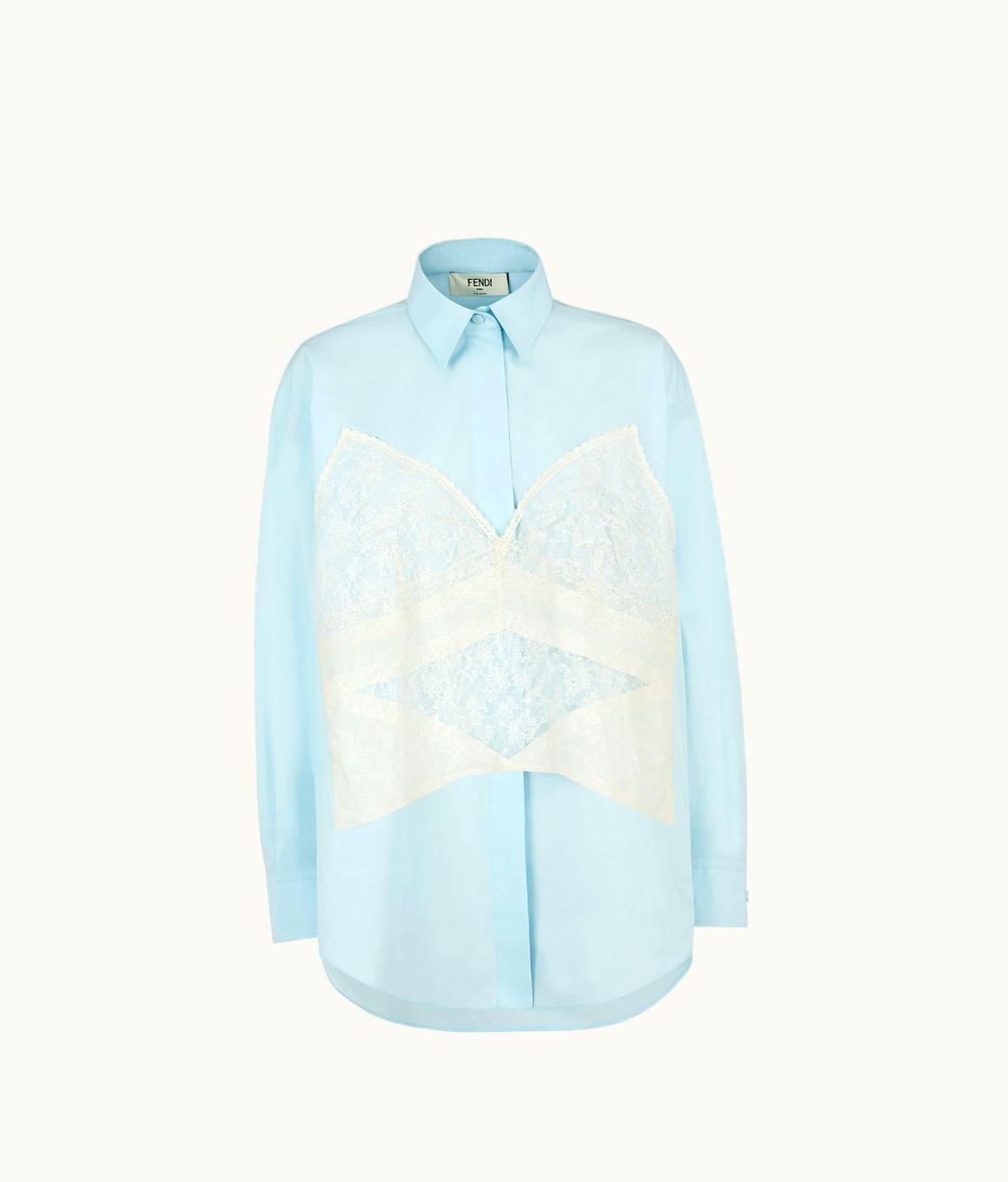 Fendi Trompe L'œil Light Blue Cotton Poplin Shirt | GLINT