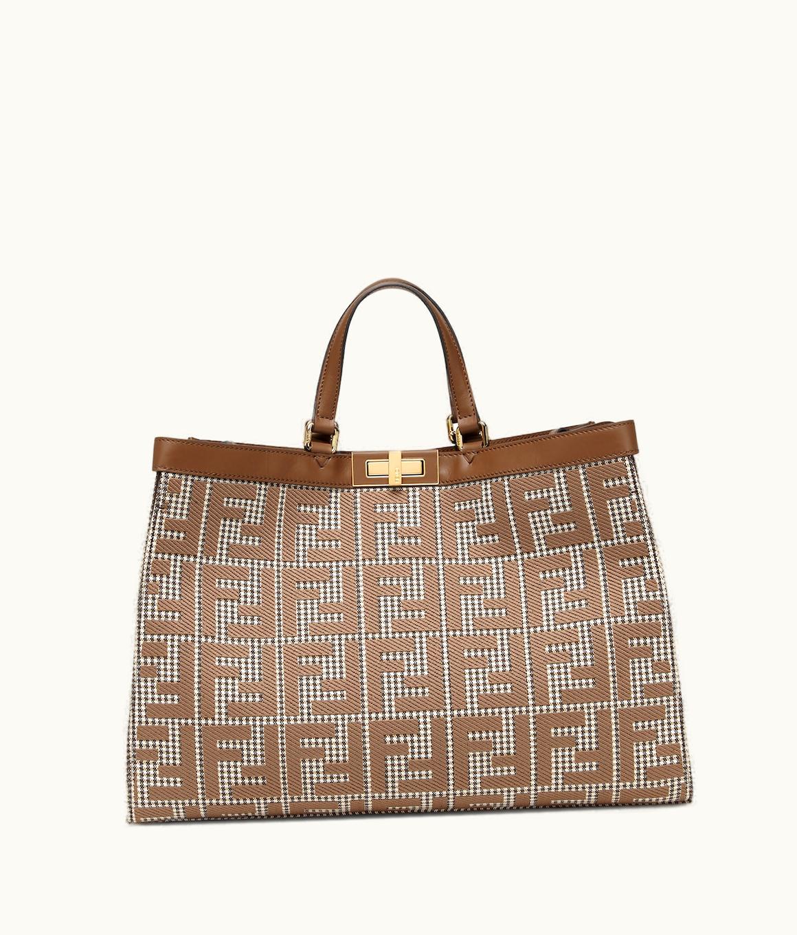 Fendi X-Tote - Brown Houndstooth Wool Shopper With FF Embroidery | GLINT