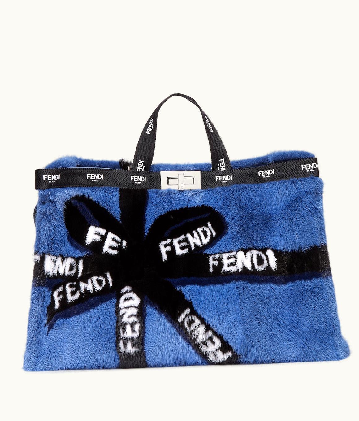 Fendi X-Tote Large - Blue Mink Shopper With Ribbon Inlay | GLINT