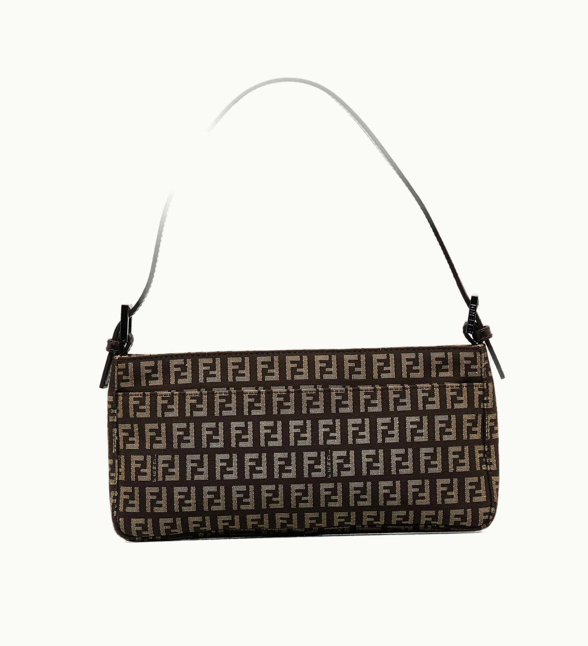 Fendi Zucchino Baguette Canvas Leather Shoulder Bag Beige | GLINT