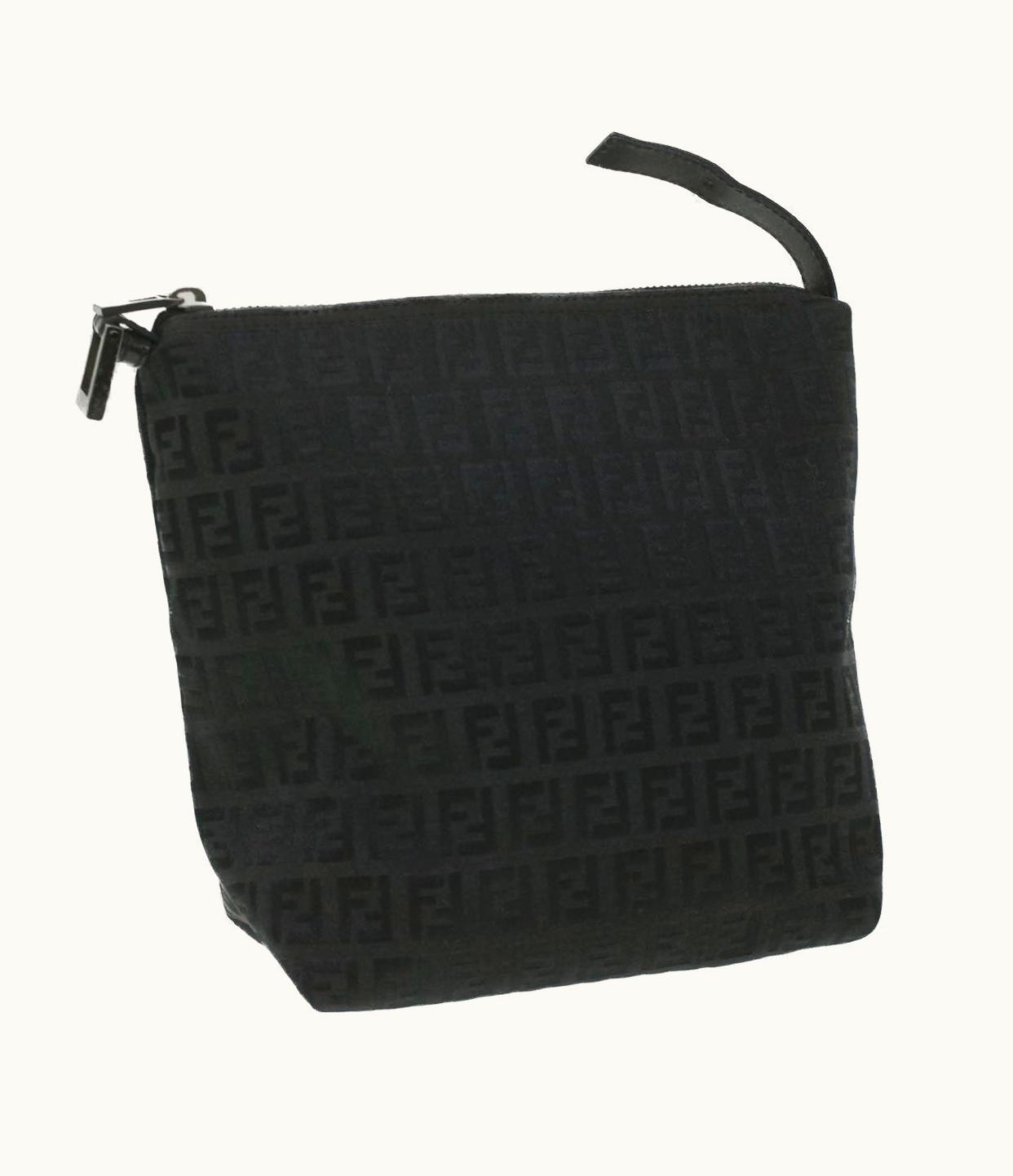 FENDI Zucchino Canvas Hand Bag Compact Black | GLINT