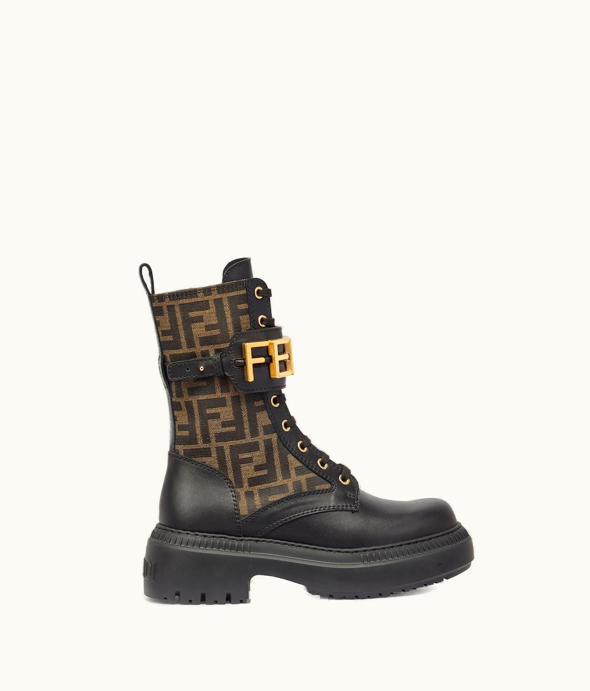 Fendigraphy FF Black Leather Combat Boots | GLINT