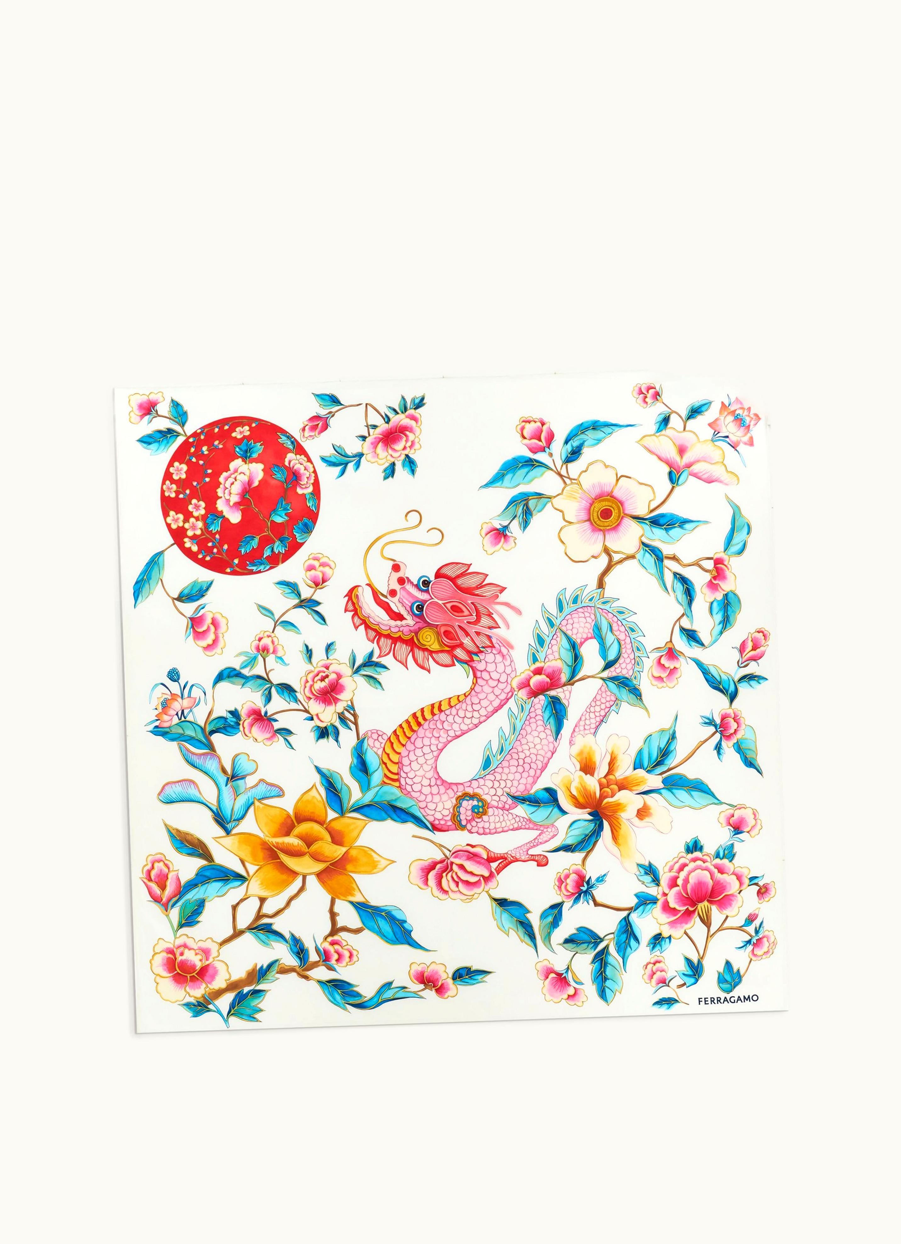 Ferragamo Dragon Print Silk Foulard White | GLINT