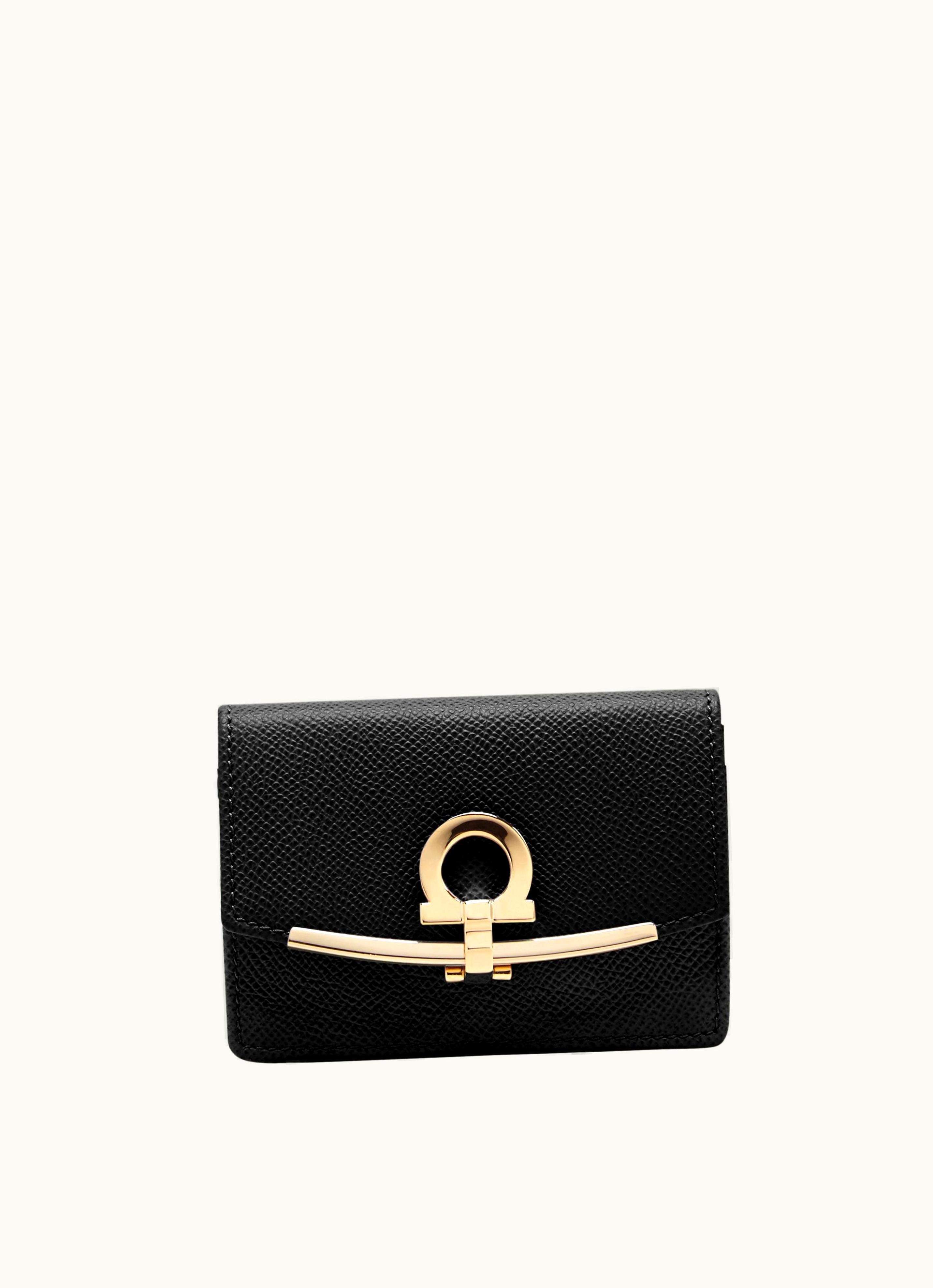 Ferragamo Gancini Business Card Holder Black | GLINT