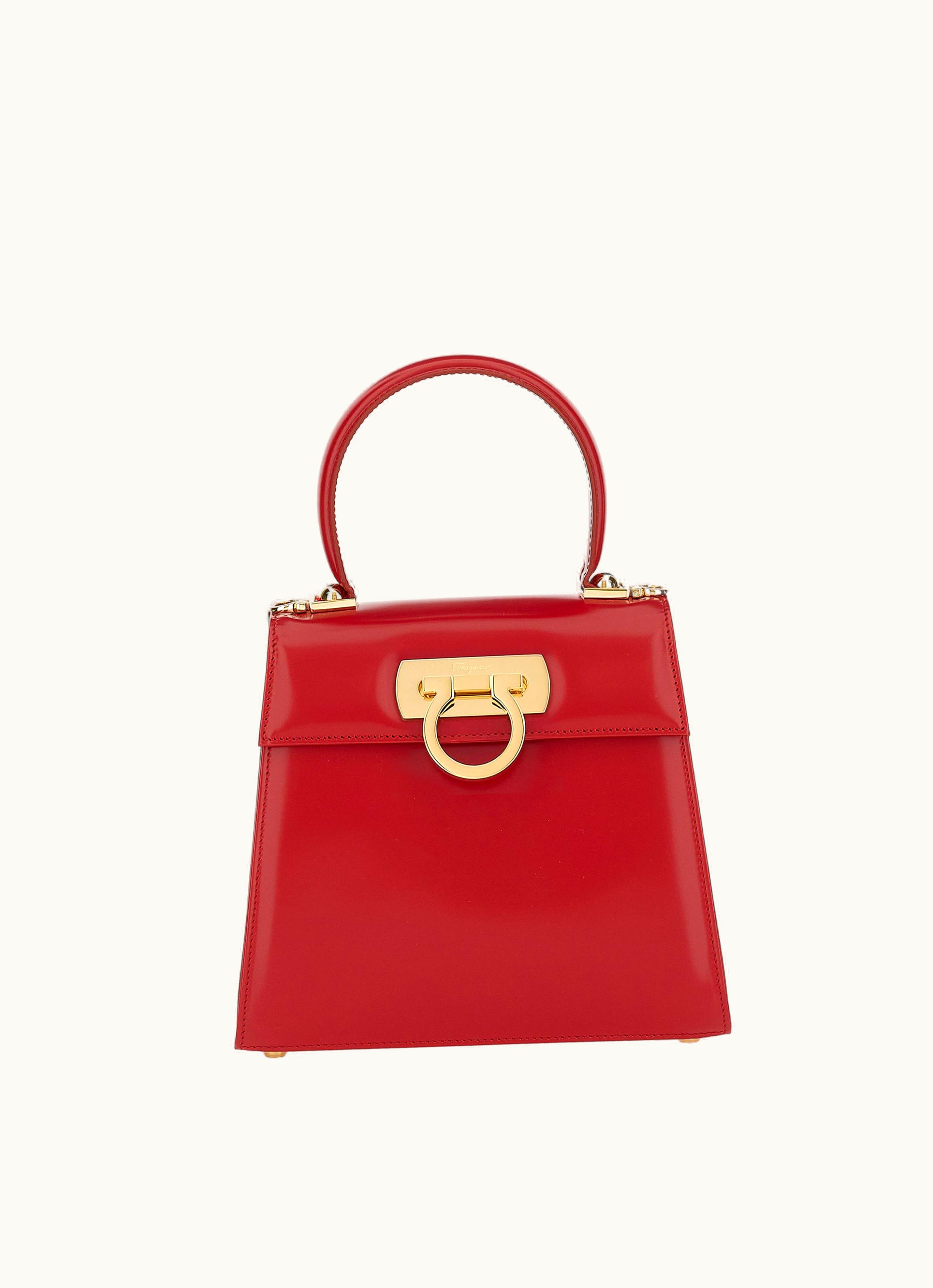 Ferragamo Iconic Top Handle (S) Red Luxe Handbag | GLINT