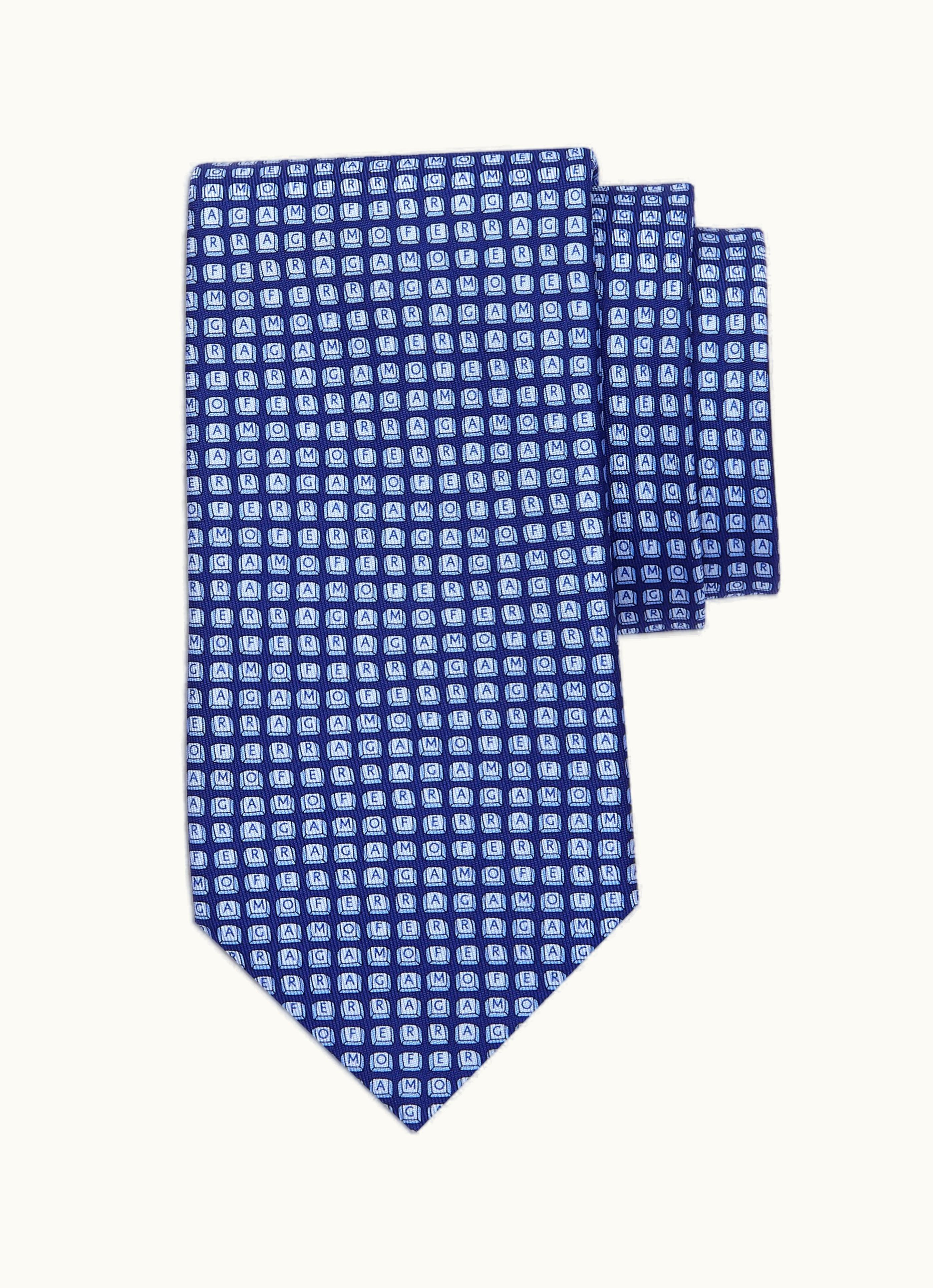 Ferragamo Key Print Silk Tie Ties - Blue Silk Tie | GLINT