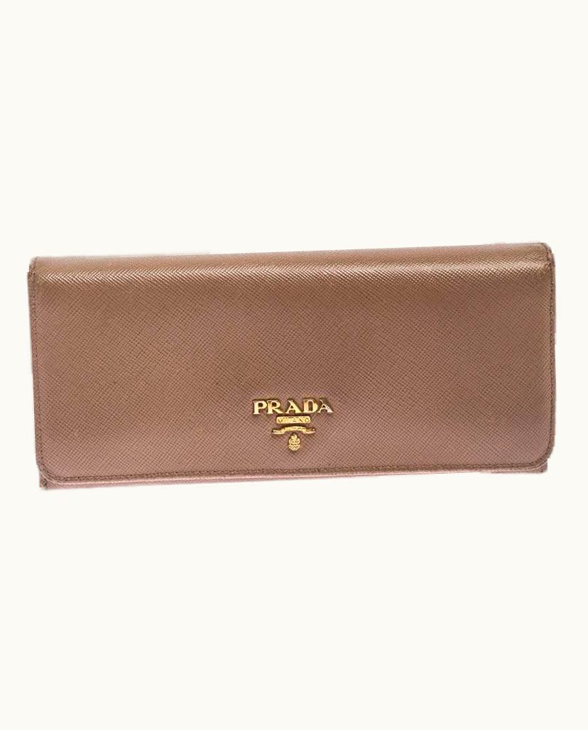 Prada Beige Saffiano Leather Continental Flap Wallet | GLINT