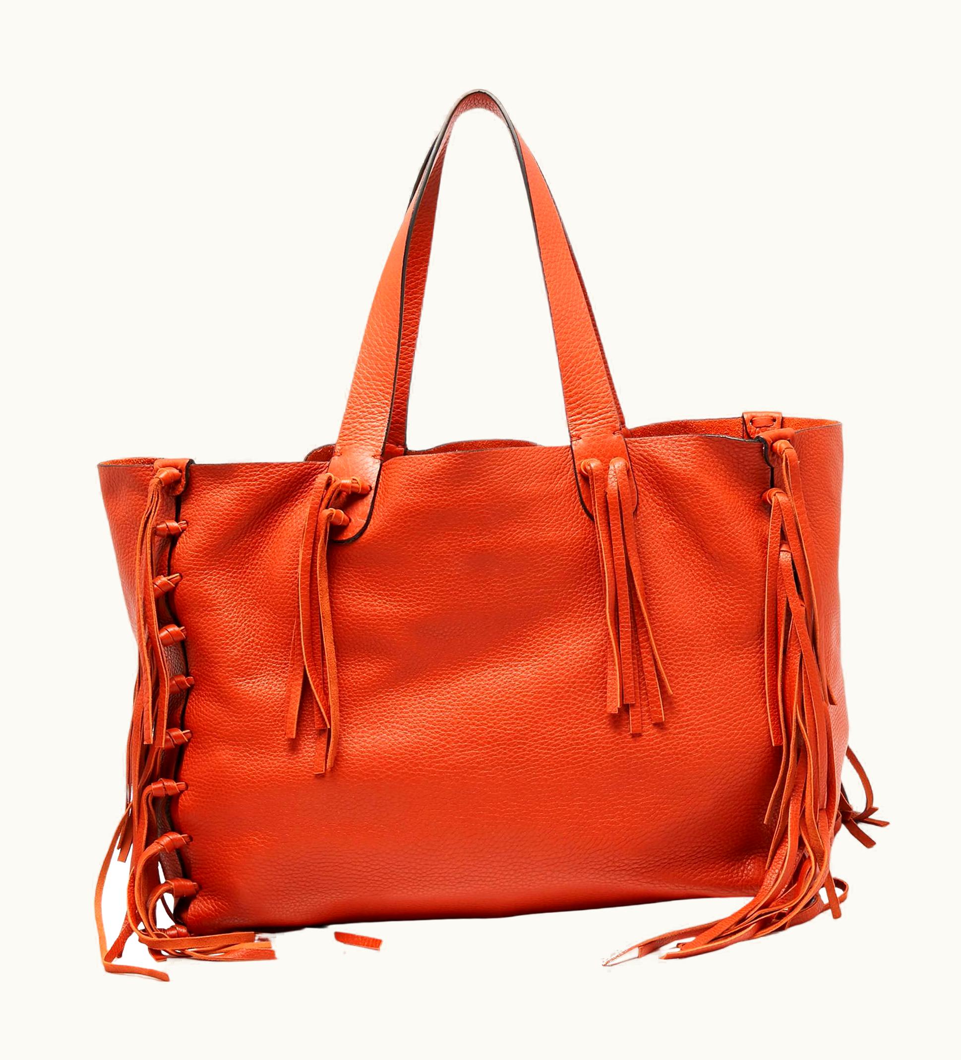 Valentino Orange Pebbled Leather Fringe C-Rockee Tote UZ0611054 | GLINT