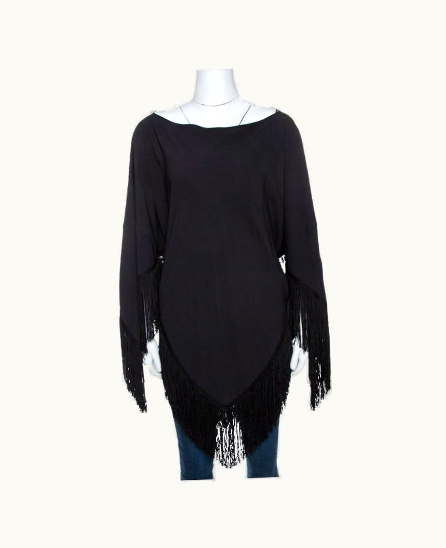 Balenciaga Black Crepe Fringed Poncho | GLINT