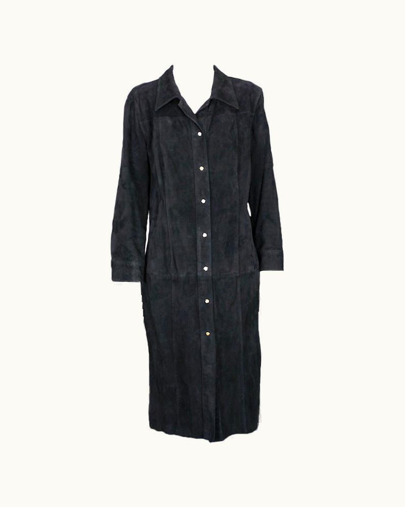 Gianni Versace Black Suede Shirtdress | GLINT