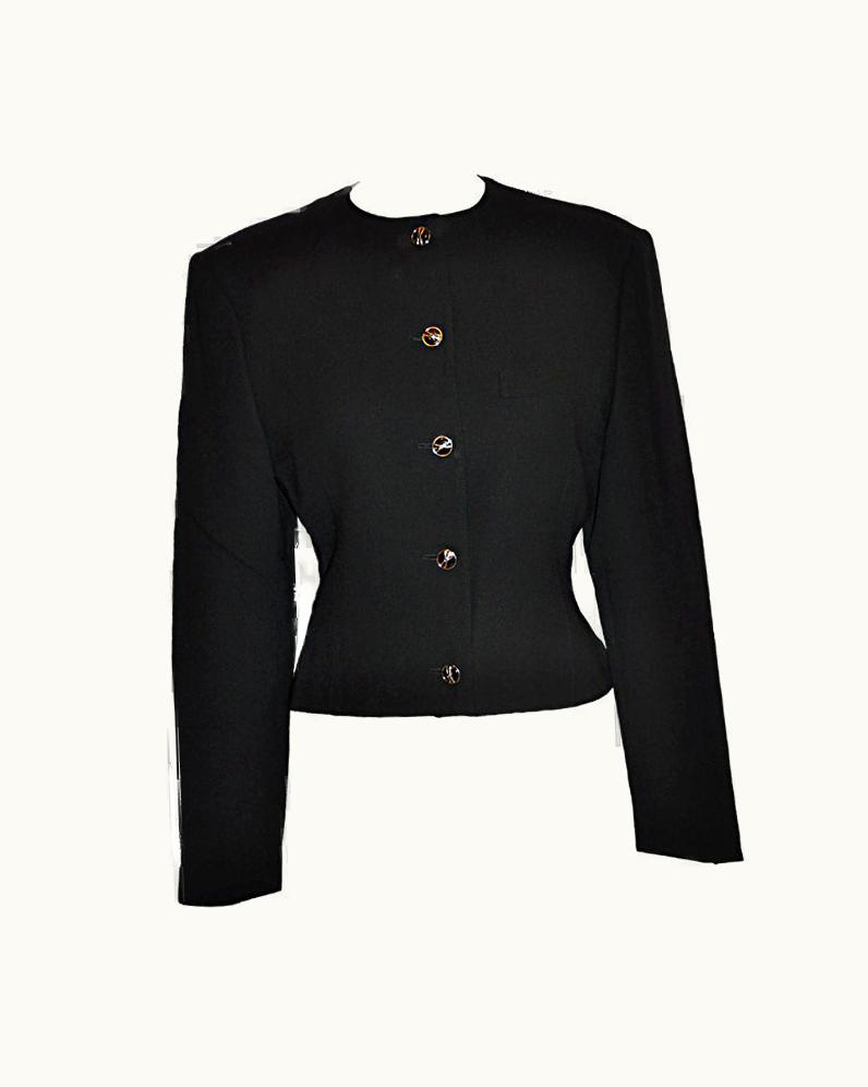 Gianni Versace Black Wool Crepe Waist Jacket | GLINT