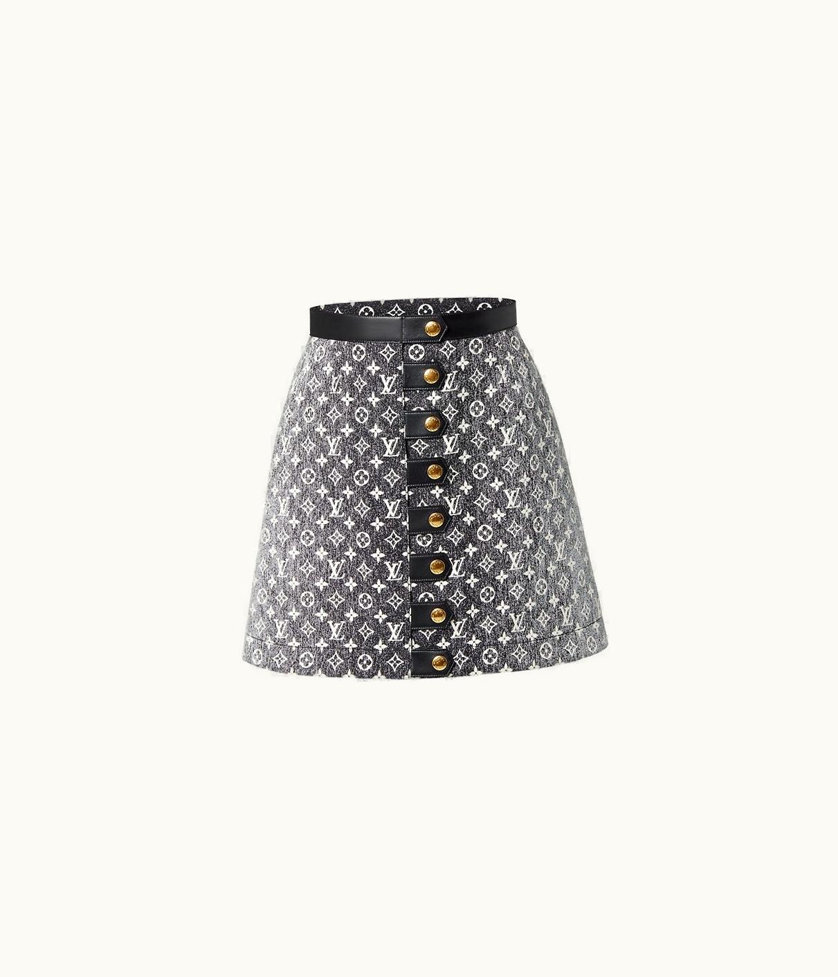 Louis Vuitton Monogram Denim Button Tab Skirt | GLINT
