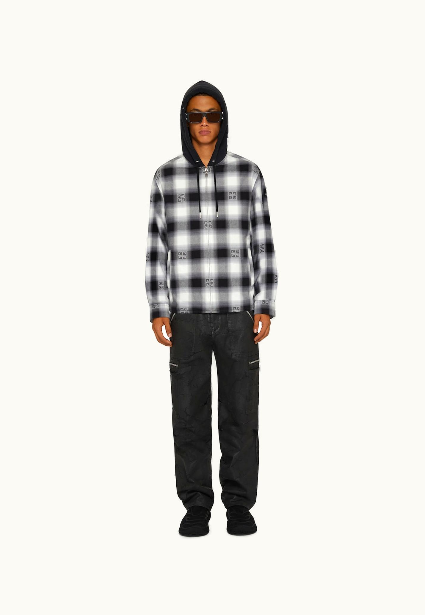 Givenchy Hooded Overshirt In 4G Checked Flannel | GLINT