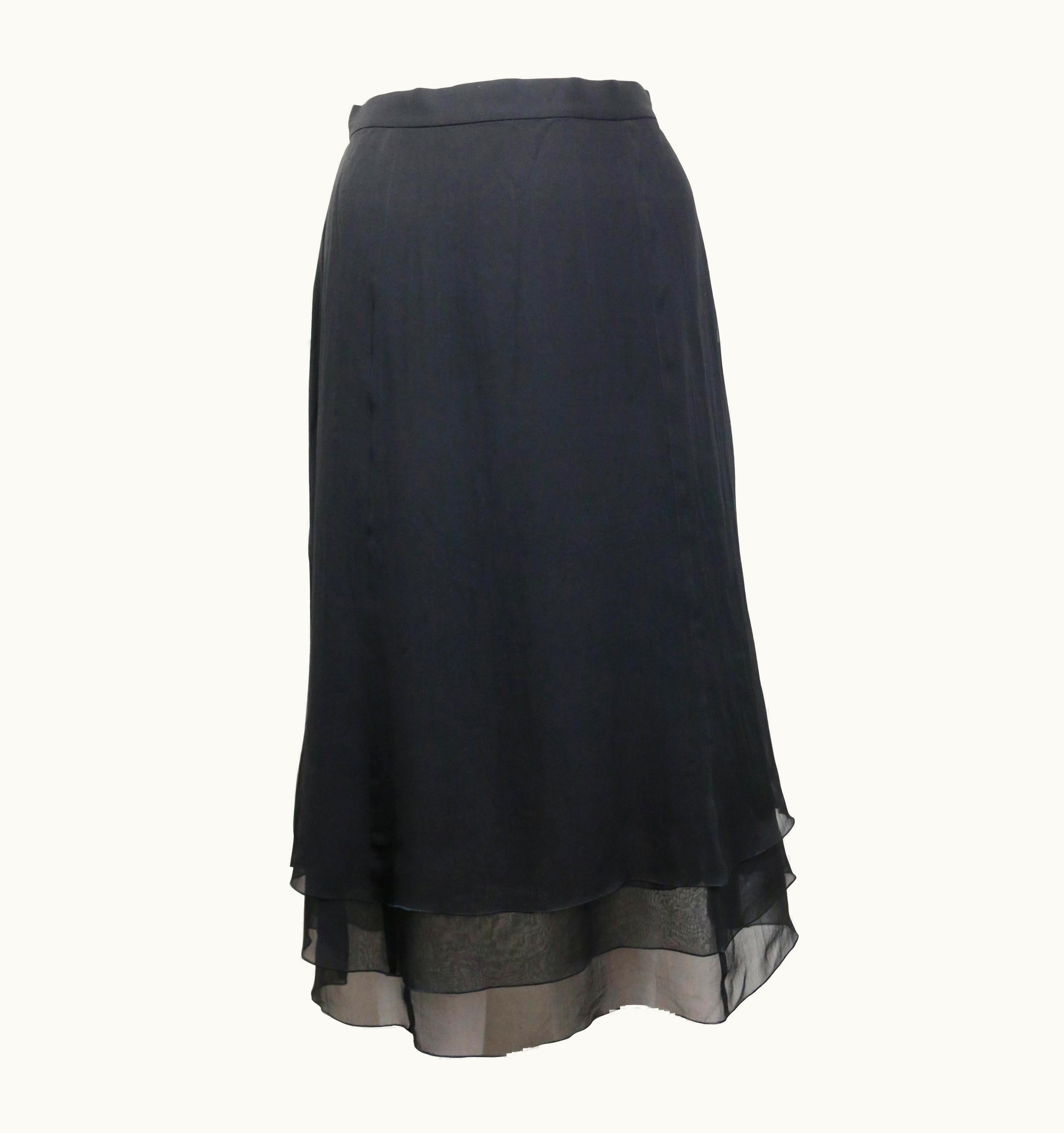 GLINT 1995A Chanel Ruffle Silk Knee-Length Skirt Black | GLINT