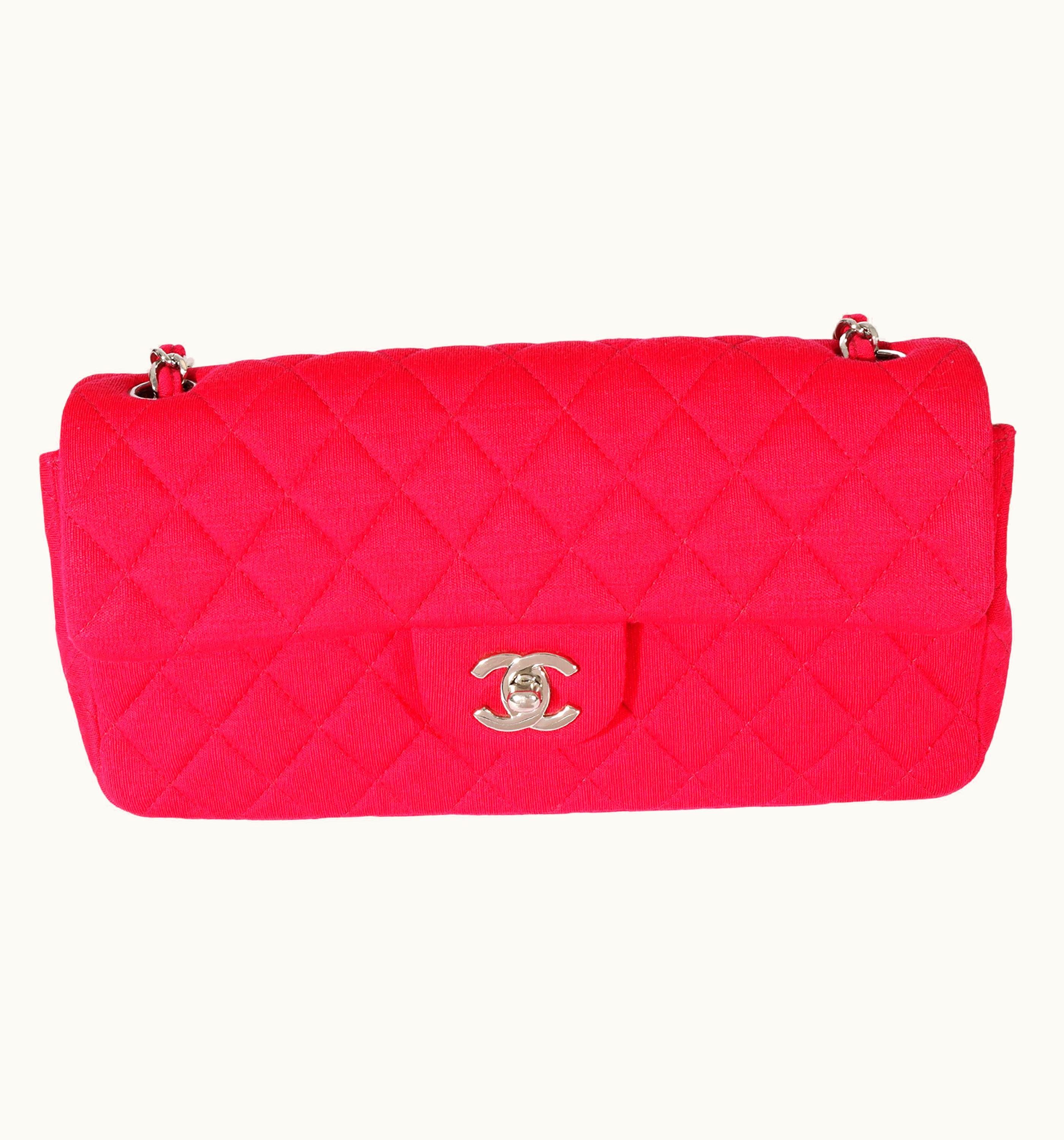 GLINT - Chanel Pink Jersey East West Flap Small Handbag Silver | GLINT
