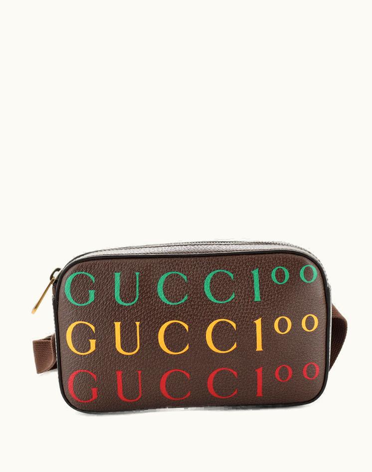 Gucci 100Th Anniversary Belt Bag Printed Leather Brown Aged Gold | GLINT
