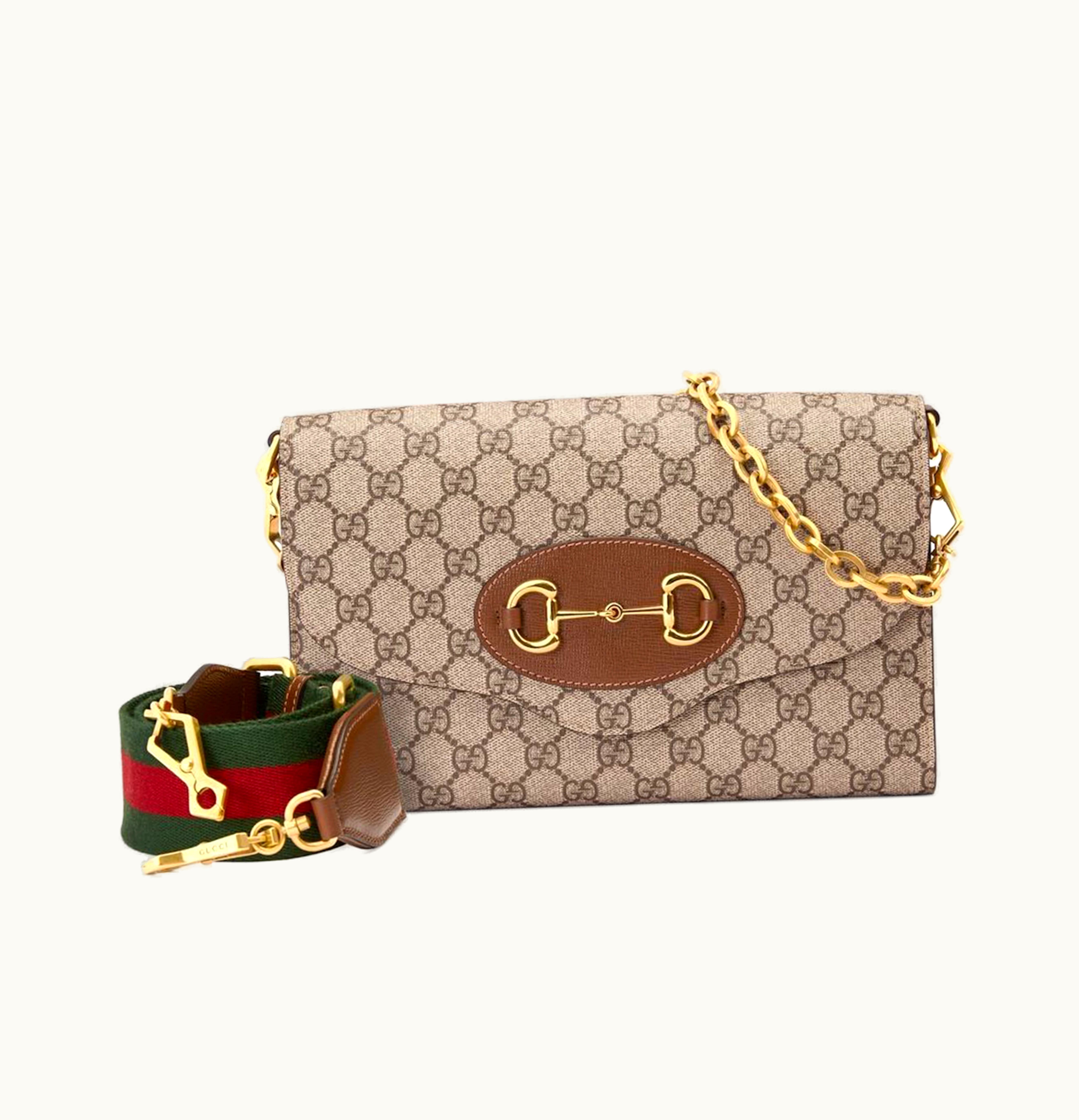 Gucci 1955 Horsebit Shoulder Bag Small GG Supreme Beige Ebony | GLINT