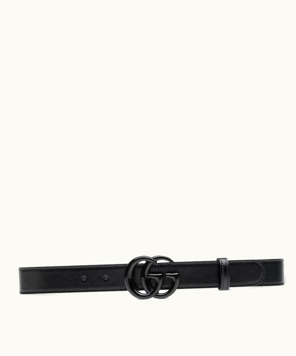 Gucci Aria GG Marmont Thin Belt Black Leather | GLINT