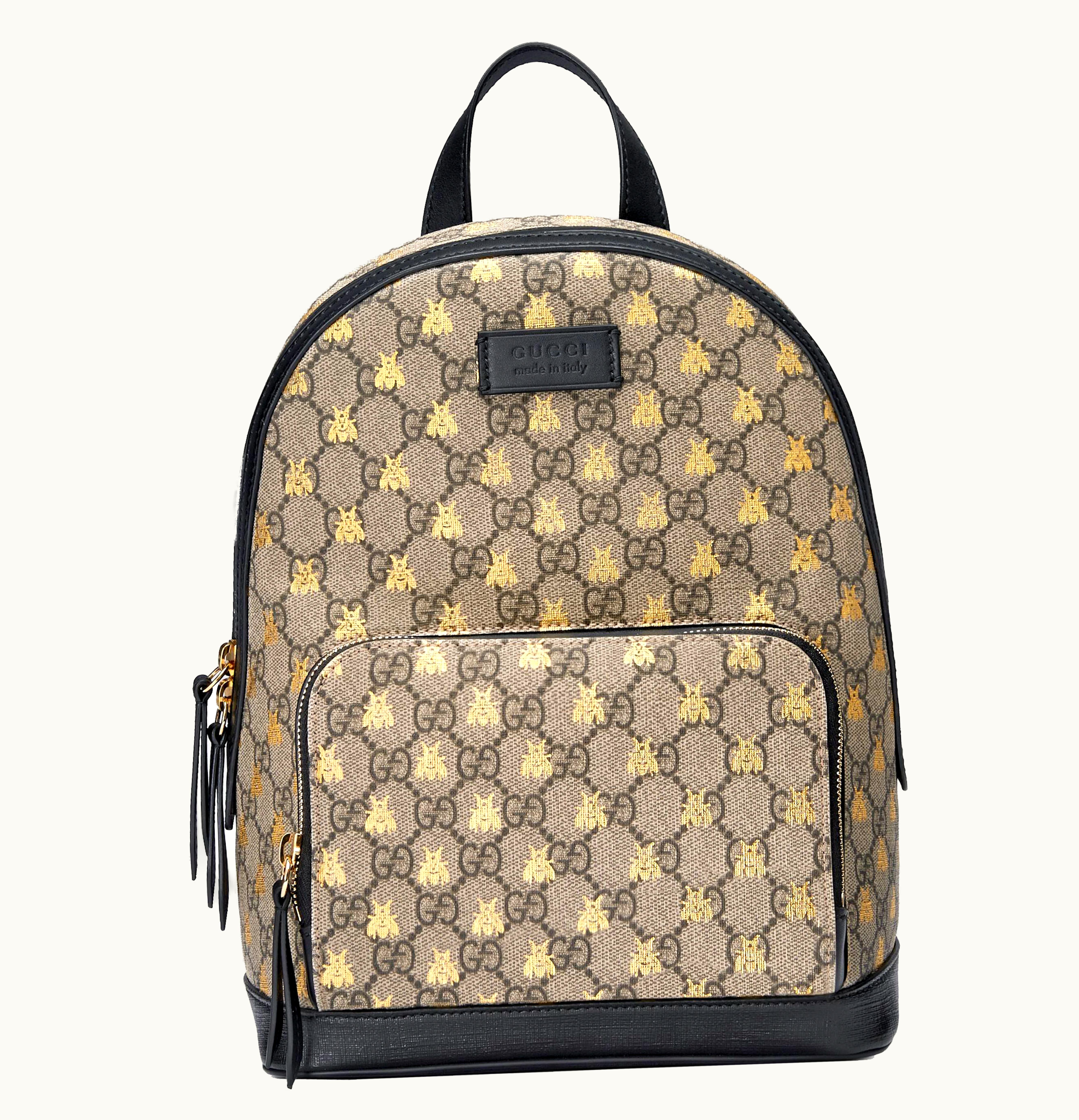 Gucci Backpack GG Supreme Gold Bees Small Beige Ebony Black | GLINT