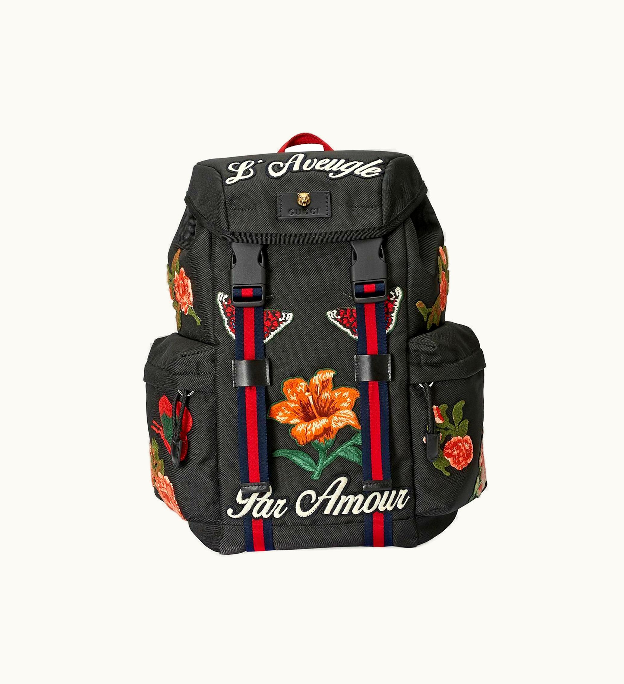 Gucci Backpack Techno Canvas Embroidered Flowers Black | GLINT
