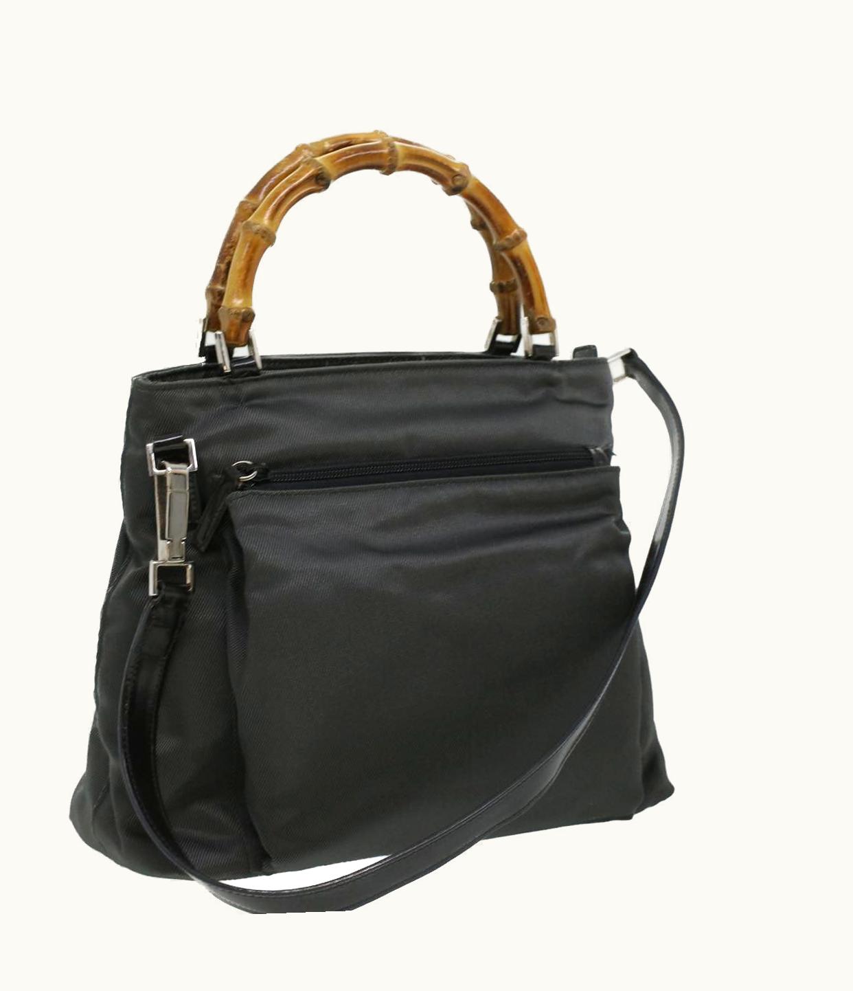 Gucci Bamboo Hand Bag Nylon Gray | GLINT