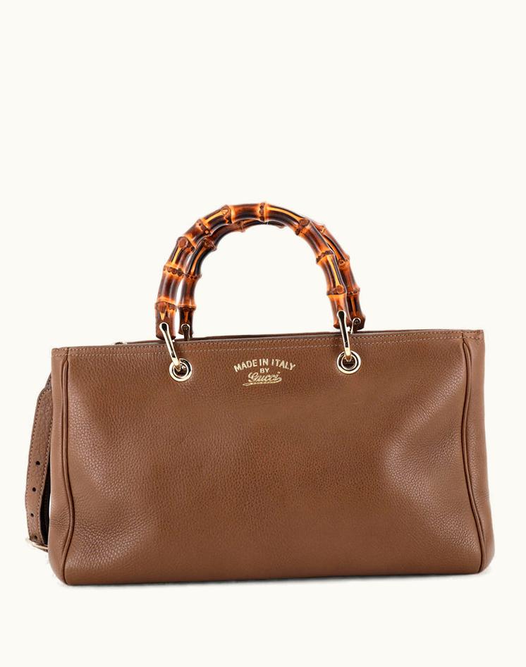 Gucci Bamboo Shopper Tote Leather Medium BrownLuxury Bag | GLINT