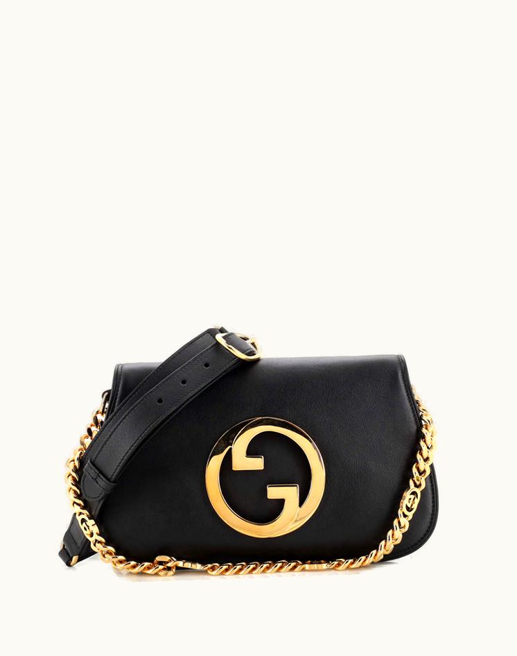 Gucci Blondie NM Chain Flap Bag Leather Small Black Gold | GLINT