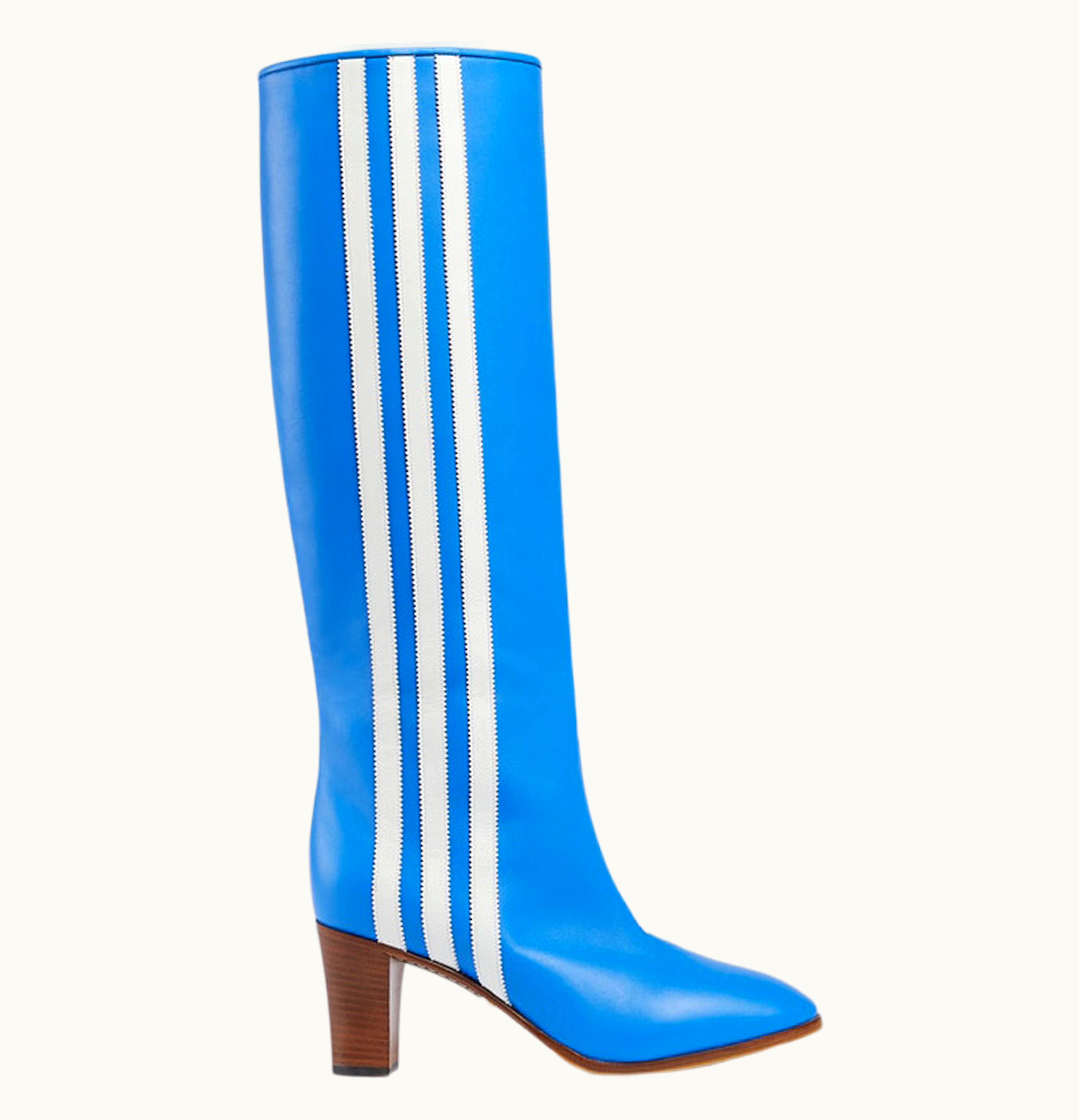 adidas x Gucci 73mm Knee High Boots Bright Blue Leather | GLINT