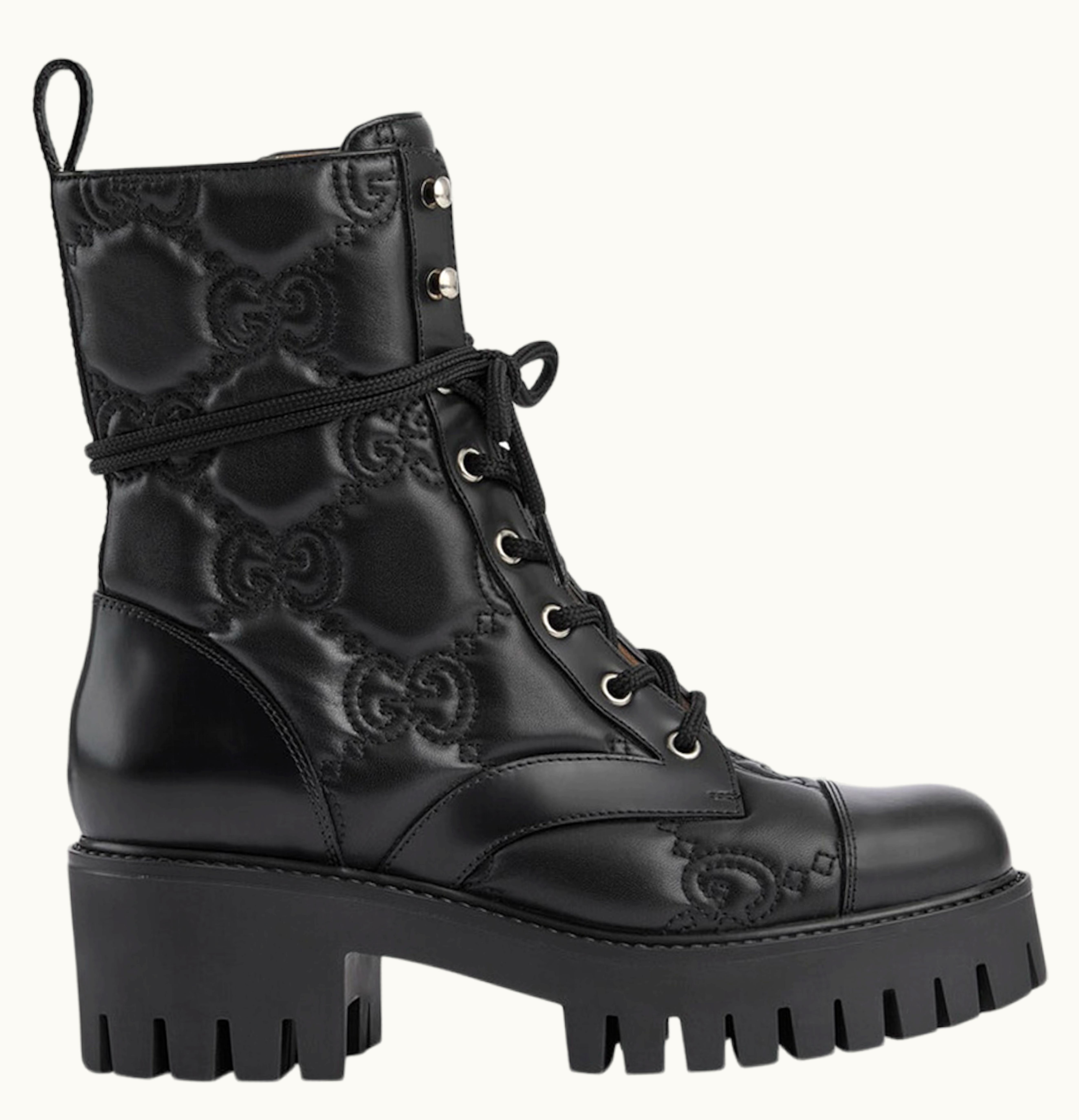 Gucci GG 70mm Quilted Lace Up Boots Black Leather | GLINT